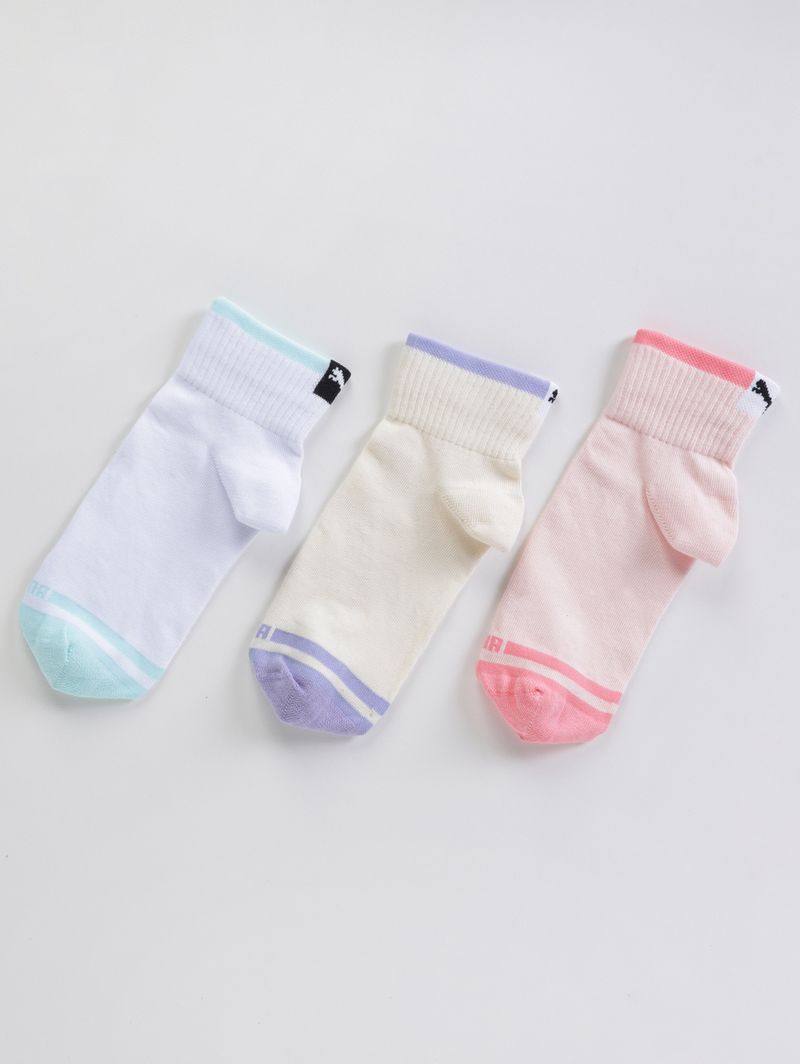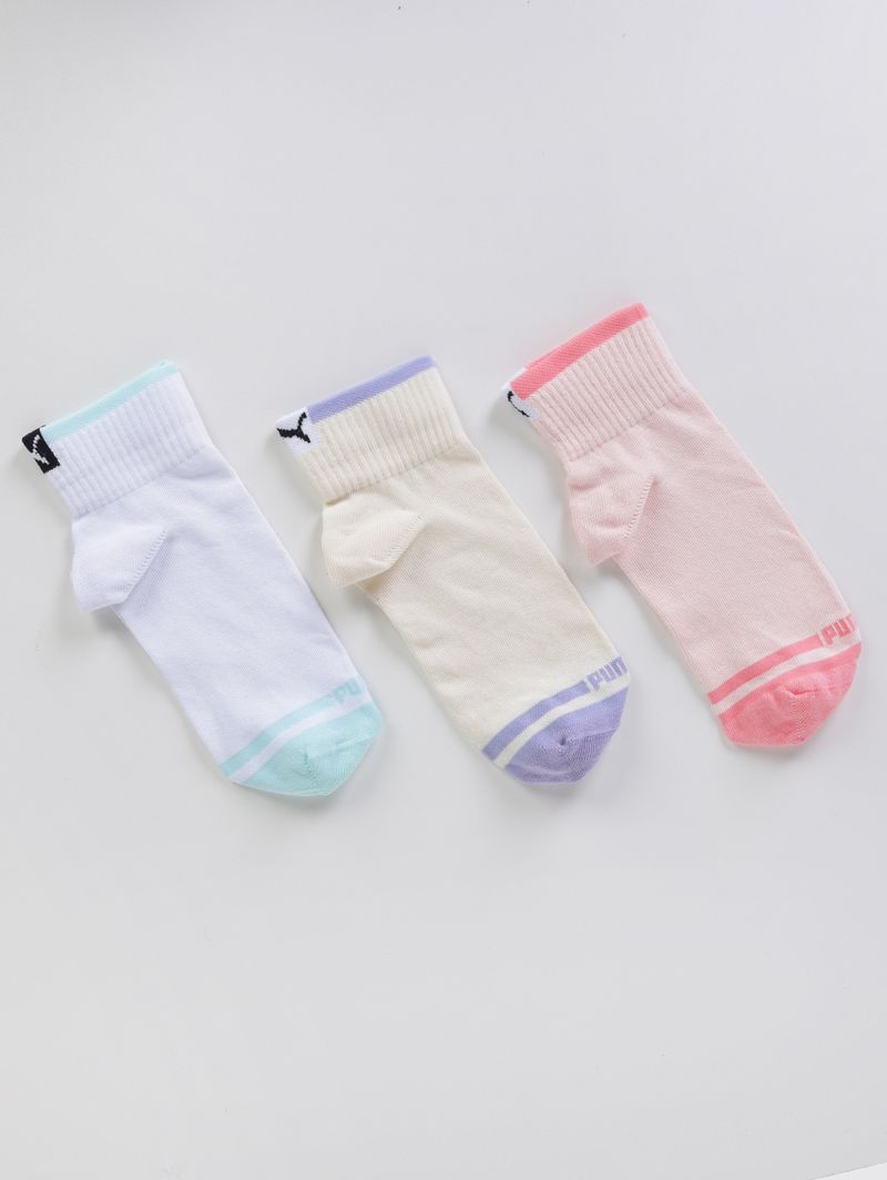 Kit com 03 Meias Cano Médio Puma Feminina BEGE/BRANCO/ROSA