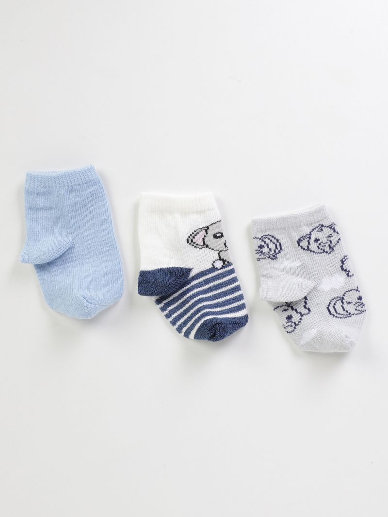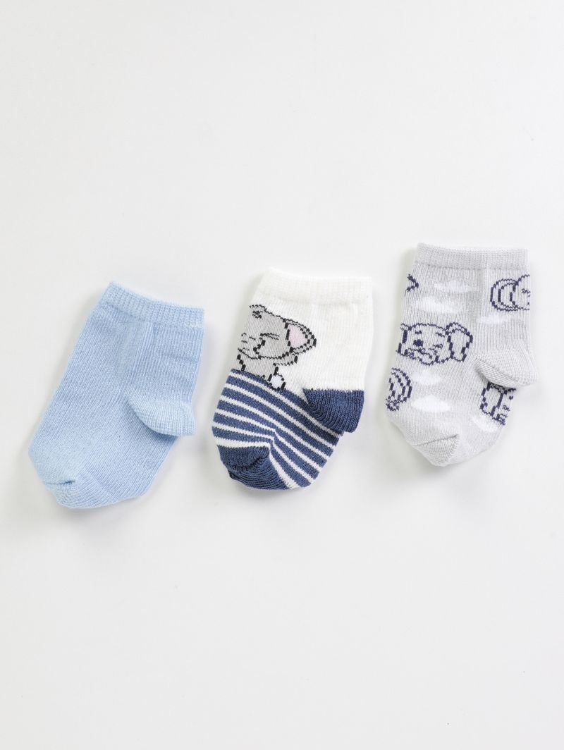 Kit com 03 Meias Infantil Para Bebê- OFF WHITE/AZUL/MESCLA