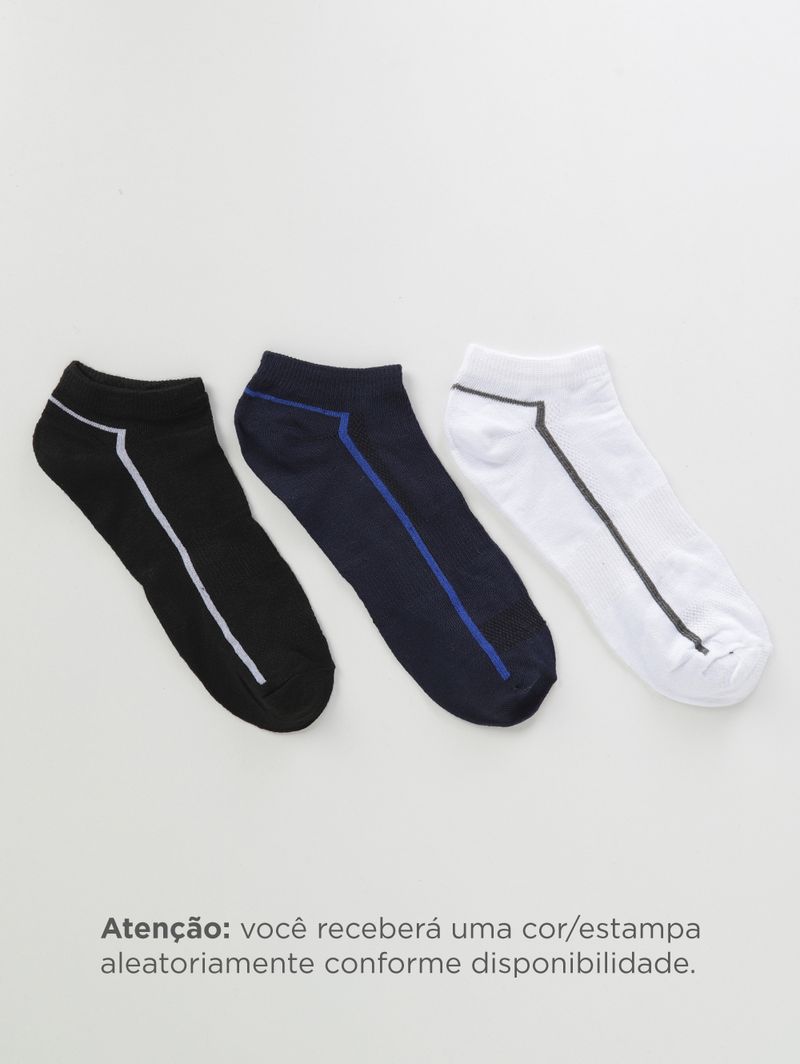 Contém: 03 pares de meias Composição: 62% poliéster, 35% algodão, 03% spandex Tamanho: 40 - 46