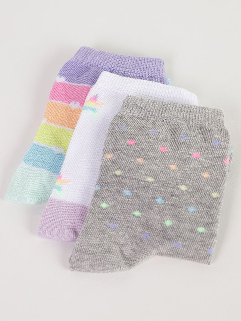 Kit com 03 Meias Selene Femininas BRANCO/MESCLA