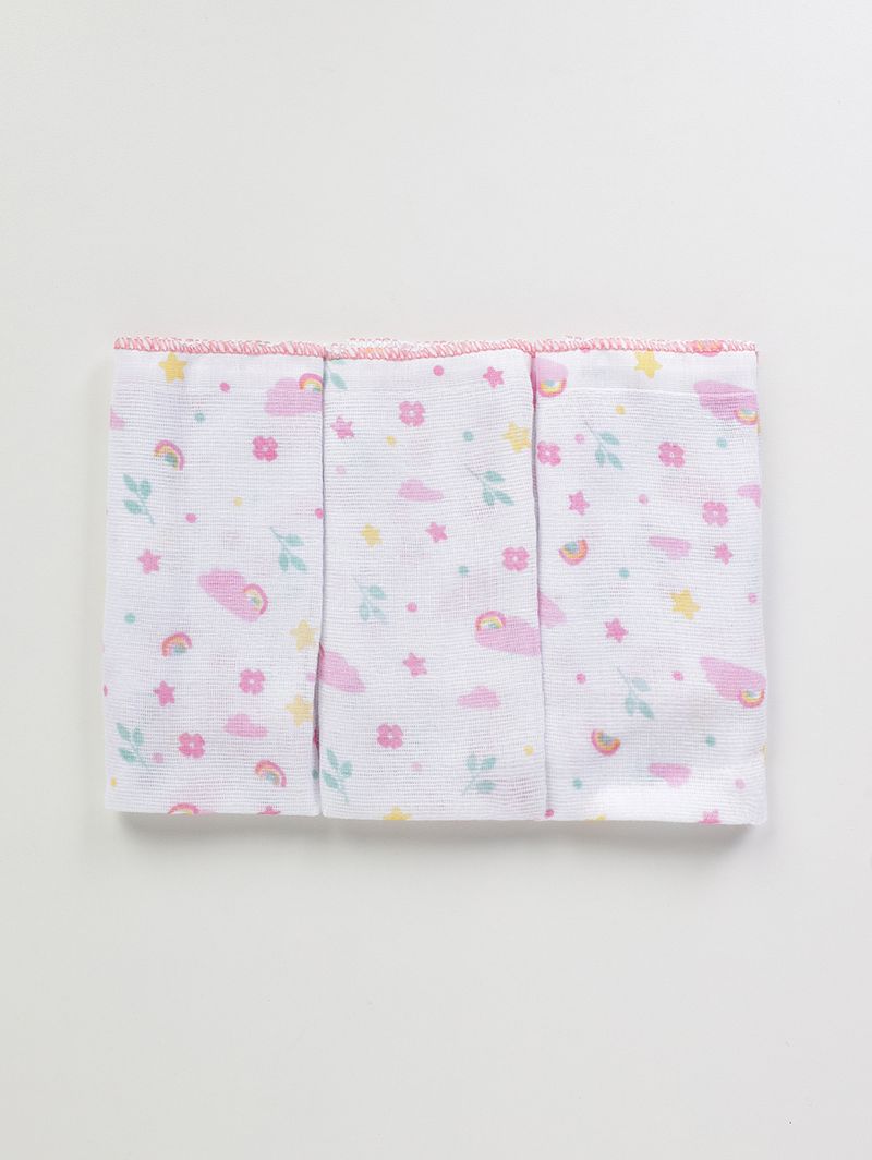 Kit de Babetes Estampados Infantil Para Bebê - Rosa