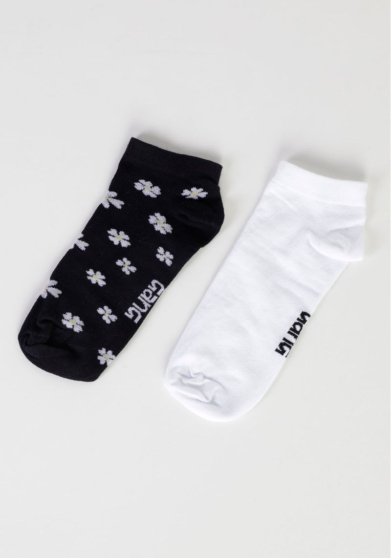 Kit de meias feminina, 2 pares na modelagem sapatilha, com estampa de flores. Meia confeccionada em algodão, poliamida e elastano, tamanho único: 34 ao 39.