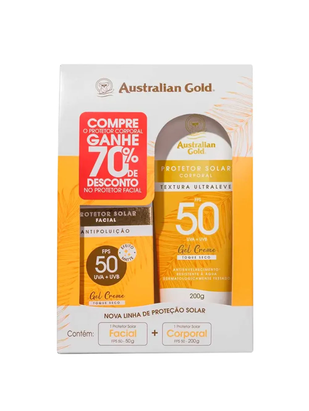 Contém: 01 protetor solar facial 50g + 01 protetor solar corporal 200g