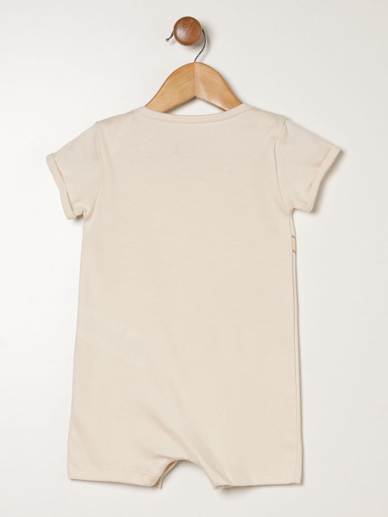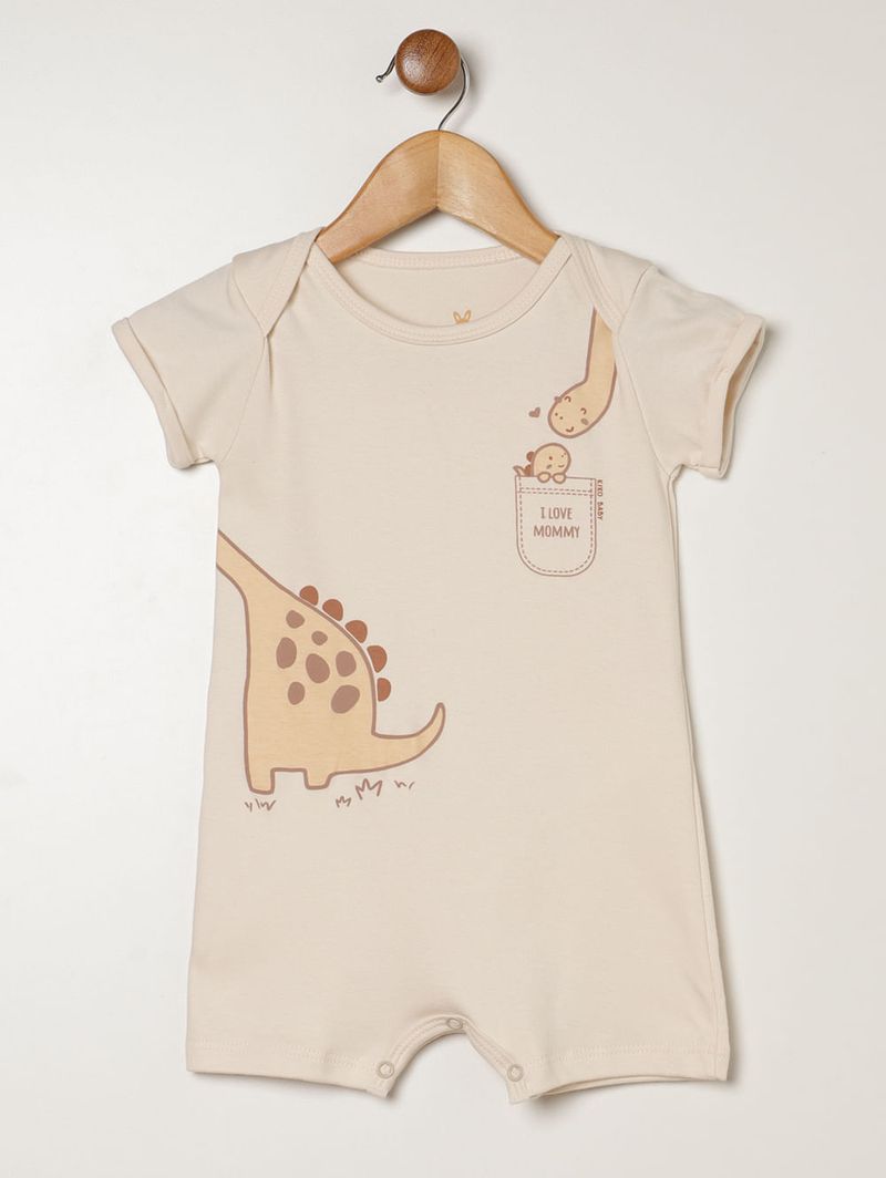 Macacão infantil para bebê confeccionado em meia malha 100% algodão, garantindo toque macio, respirabilidade e muito conforto para acompanhar todas as descobertas do dia a dia. O modelo apresenta gola redonda com abertura nos ombros, que facilita o vestir, mangas curtas e fechamento entrepernas por botões de pressão, proporcionando praticidade na rotina. O diferencial fica por conta da estampa em silk na parte frontal, que adiciona um toque fofo e divertido ao visual. Uma peça leve, confortável e ideal para compor looks delicados e funcionais!\n\nTecido: meia malha\nComposição: 100% algodão