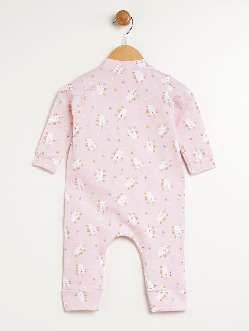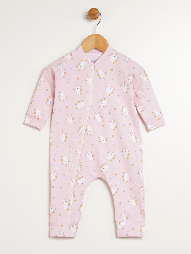 Macacão infantil para bebê desenvolvido em cotton um tecido de algodão com uma pequena porcentagem de elastano que garante mais conforto. O modelo apresenta gola redonda, mangas compridas, fechamento frontal por zíper e barra com acabamento em punho. O seu diferencial fica por conta da estampa em toda a extensão da peça. A peça que é essencial no dia a dia dos bebês!\n\nTecido: Cotton\nComposição: 96% algodão, 04% elastano