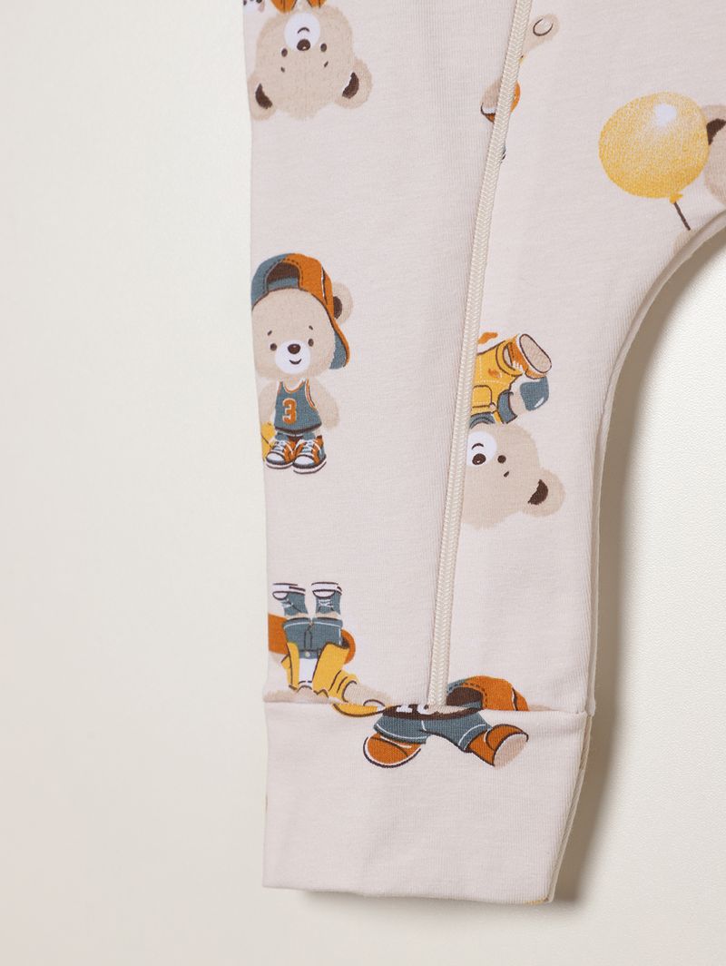 Macacão infantil para bebê desenvolvido em cotton proporcionando maciez, elasticidade e conforto durante todo o uso. O modelo conta com gola redonda, mangas compridas e barra com acabamento em punho, garantindo melhor ajuste ao corpo. O fechamento frontal por zíper facilita na hora de vestir e trocar, trazendo mais praticidade para a rotina. O diferencial fica por conta da estampa em toda a extensão, que adiciona charme e fofura ao visual dos pequenos. Uma peça confortável, funcional e perfeita para o dia a dia!\n\nTecido: cotton\nComposição: 96% algodão, 04% elastano