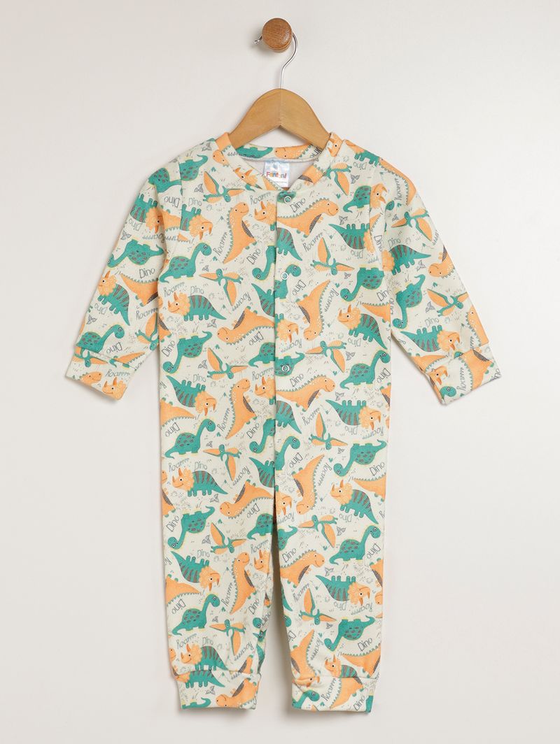 Macacão infantil para menino desenvolvido em soft, um tecido super macio e confortável com o toque aveludado que vai garantir muito conforto à pele do bebê. O modelo apresenta gola redonda, abertura na parte frontal e entrepernas por botões de pressão e acabamento em punho que impede que a peça suba pela perna do bebê. O seu diferencial fica por conta da estampa em toda a extensão da peça que a deixa mais fofa e delicada. Tudo que o seu bebê precisa!\n\n Tecido: Soft\nComposição: 100% poliéster