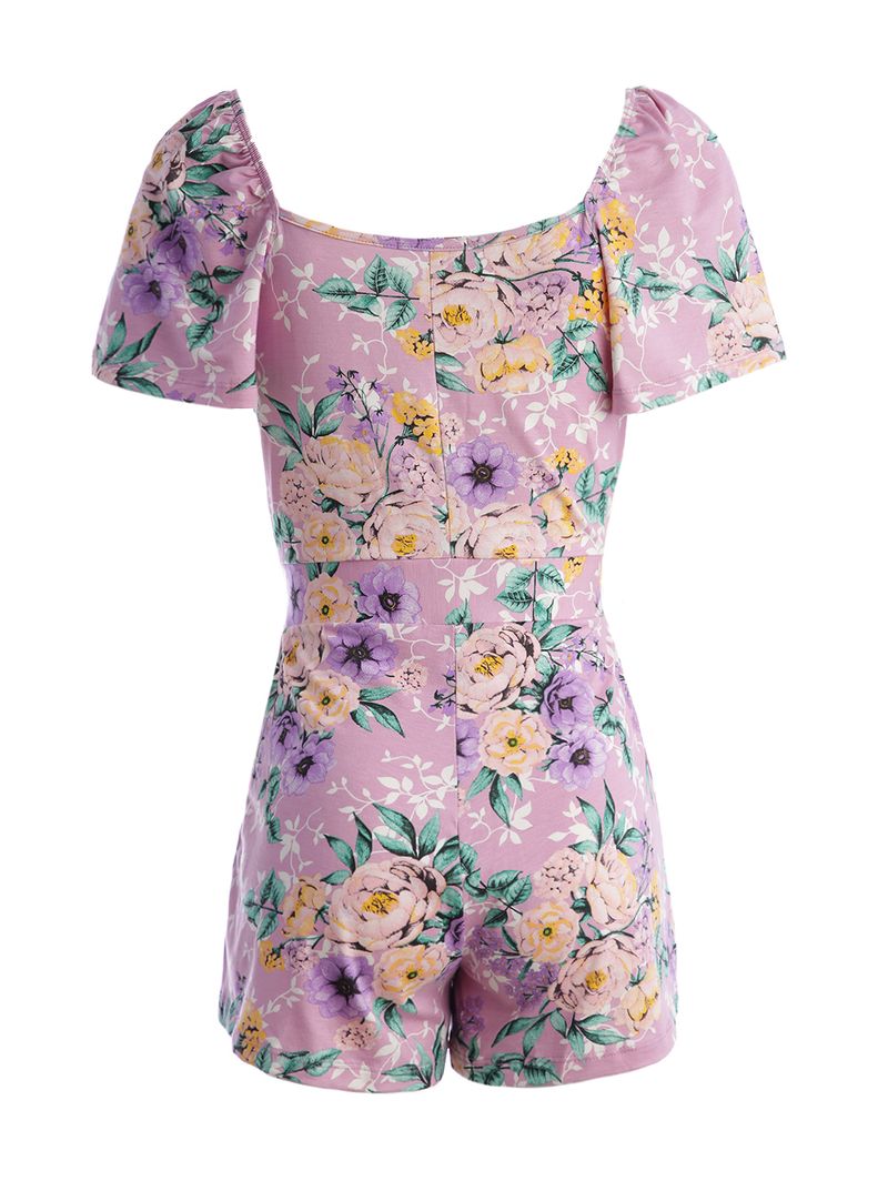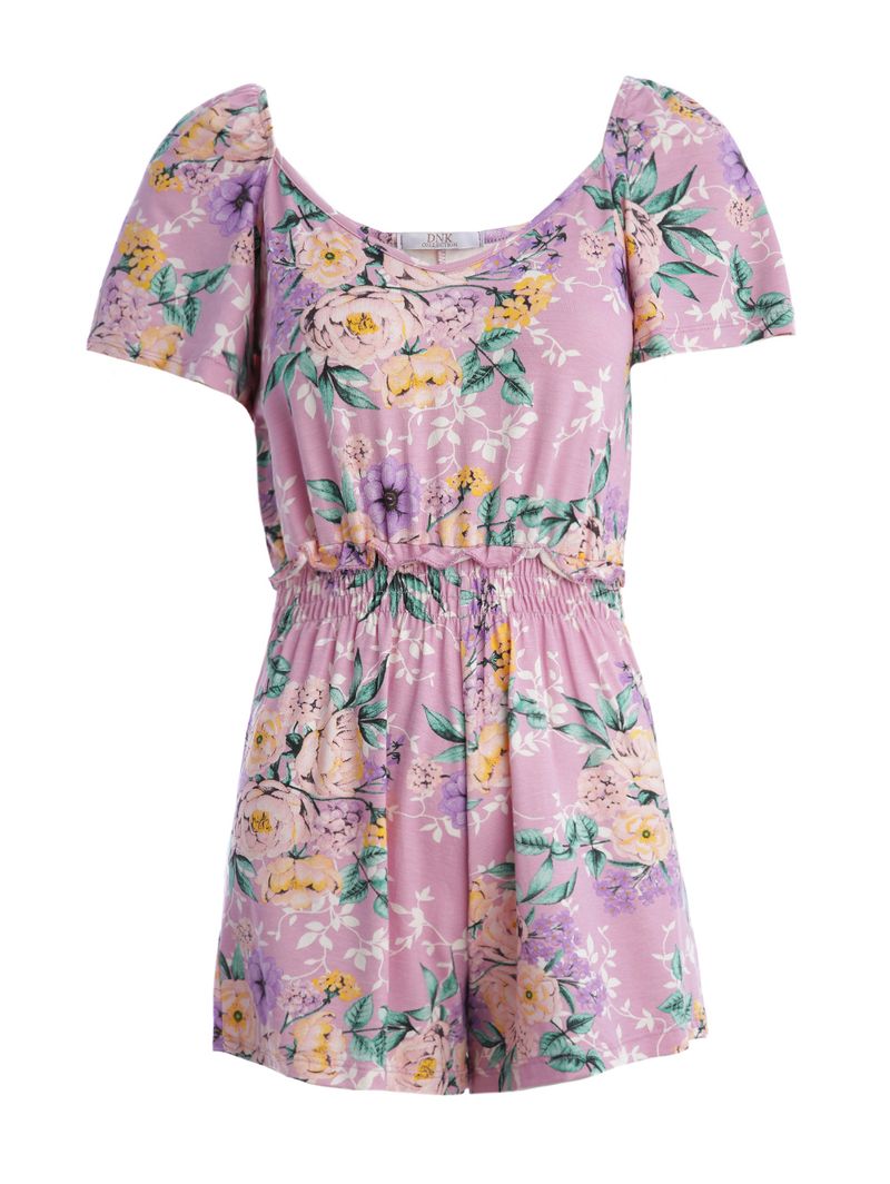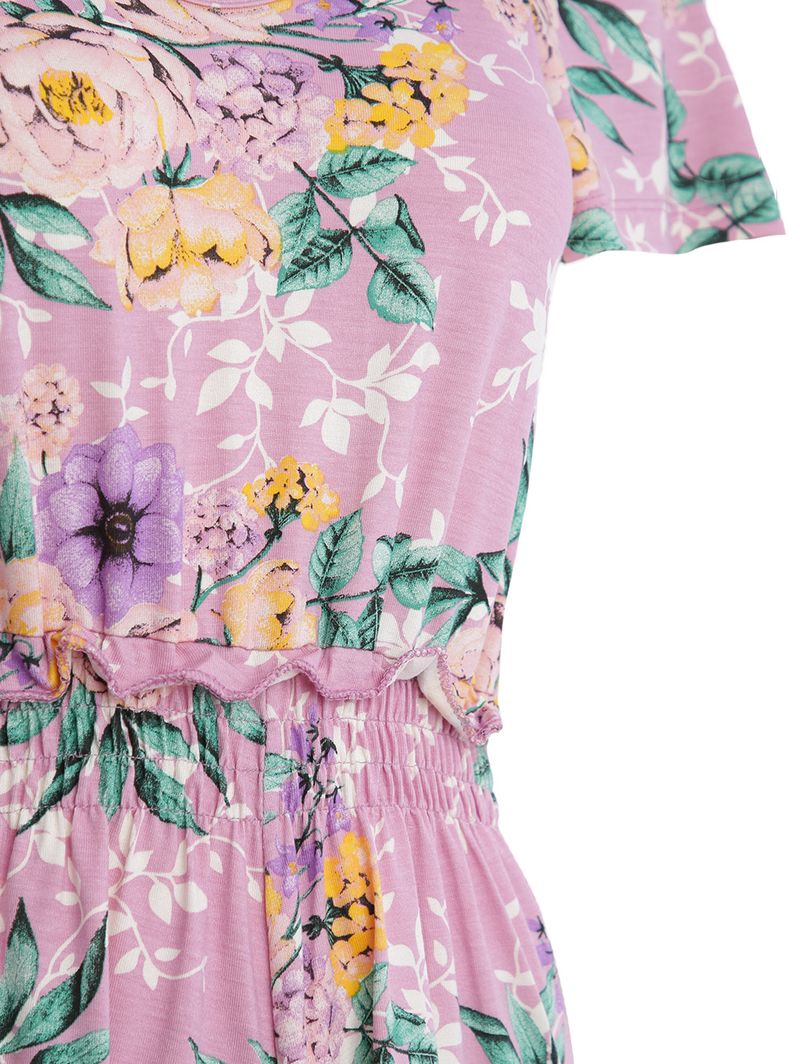 Macaquinho feminino desenvolvido em malha , um tecido versátil e confortável. O modelo possui comprimento curto, mangas curtas com aplicação de elástico e barra com acabamento simples. Possui diferencial de lastex na cintura e aplicação de babado, além de estampa por toda a extensão do vestido. Uma peça que une estilo e conforto em uma sintonia com a moda! Combine com Sandálias .