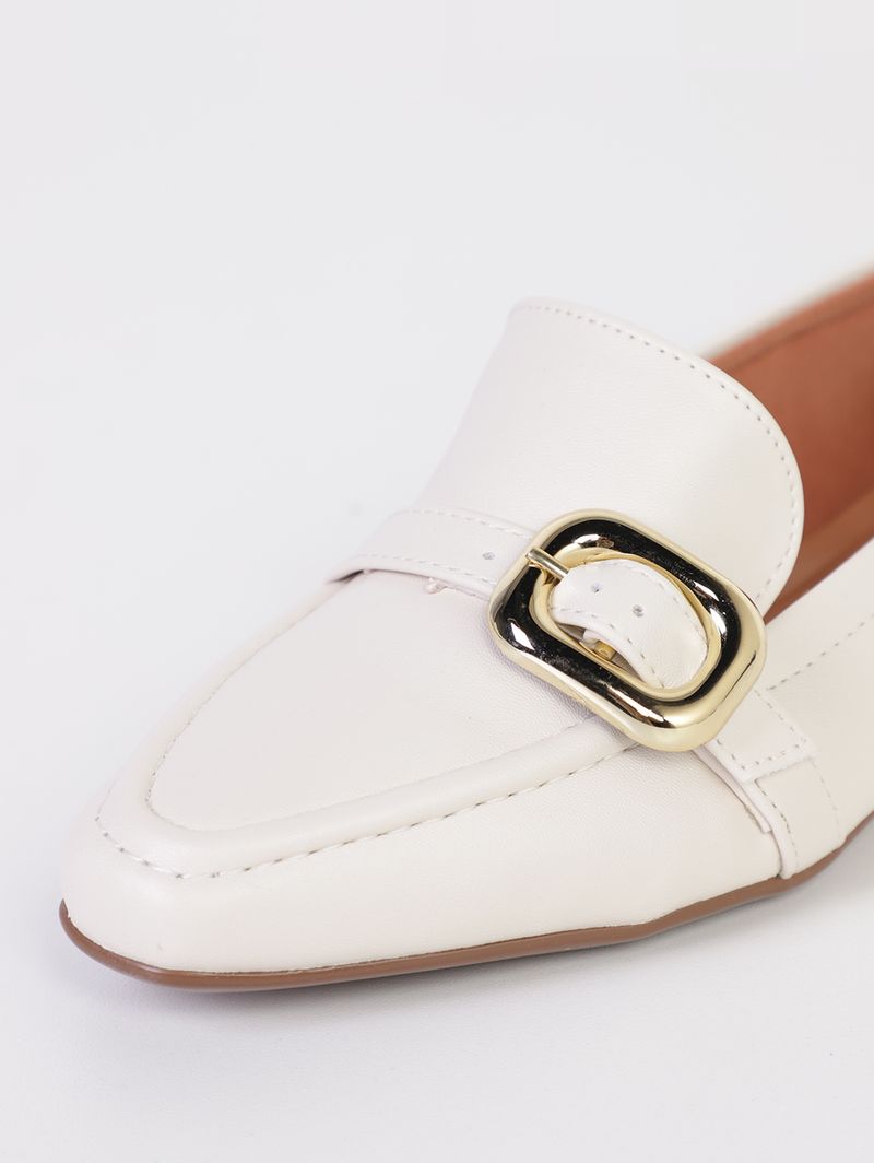 Mocassim feminino desenvolvido em material sintético, de boa qualidade, com forro em tecido espumado, para acomodar seus pés com o máximo de conforto. O modelo possui design minimalista, com detalhe de tira superior, com maxi fivela e cinco furos para ajuste, funcionando como um ponto focal, trazendo modernidade e personalidade ao design clássico do calçado. Apresenta pespontos pelo cabedal, bico quadrado, palmilha almofadada e solado flexível e antiderrapante, com salto baixo, desenvolvido em borracha, garantindo estabilidade e segurança em cada passo. Seja com jeans, saias ou alfaiataria, o mocassim garante estilo e praticidade em um só passo. Aposte nesse calçado curinga e adicione um ar de sofisticação aos seus outfits diários!\n\nMaterial: Sintético