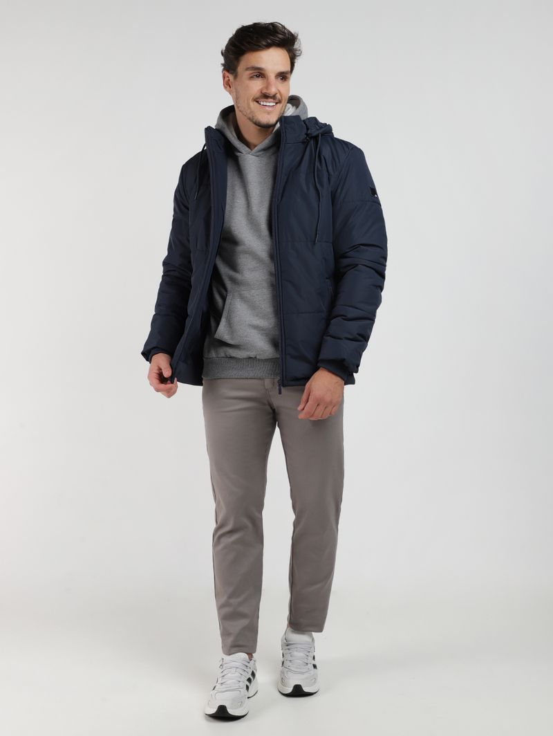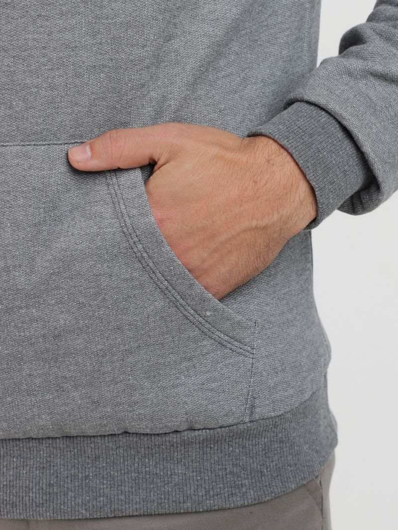 Blusão masculino desenvolvido em moletom com parte interna flanelada, um tecido de toque macio, leve e que proporciona conforto e aquecimento para o uso diário. O modelo apresenta capuz ajustável por cordão, mangas longas com punho e acabamentos canelados. Possui bolso canguru funcional, ideal para guardar pequenos objetos. Esse blusão é perfeito para os dias mais frios, ele tem caimento soltinho, toque macio e aquele visual despojado que combina com tudo!\n\nTecido: Moletom\nComposição: 100% algodão