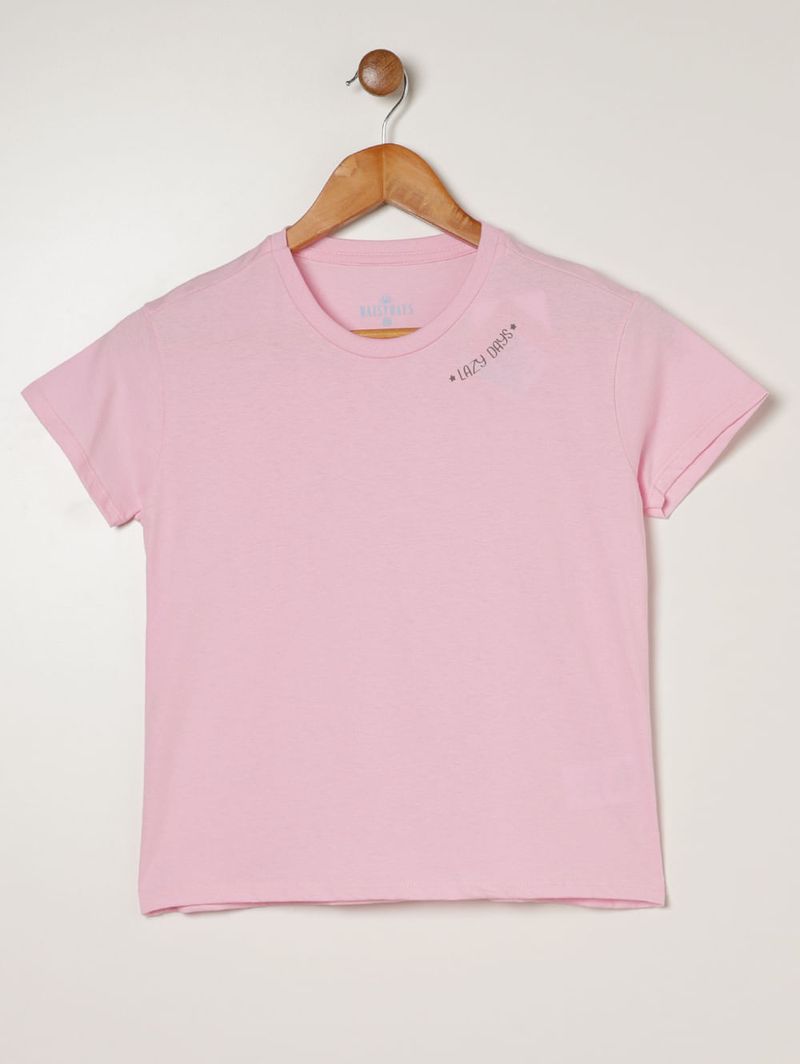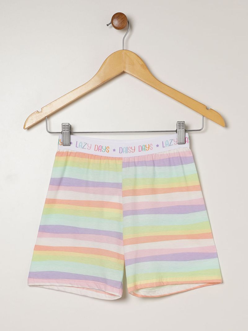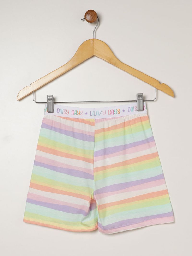 Pijama Curto Algodão Listrado Juvenil Para Menina- ROSA CLARO