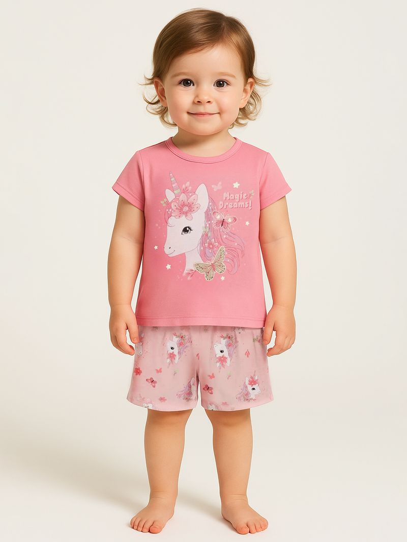 Pijama Curto Infantil Para Menina - ROSA