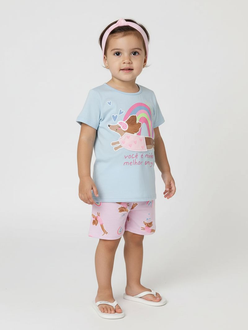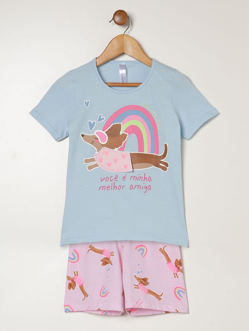 Pijama Curto Infantil Para Menina - AZUL CLARO