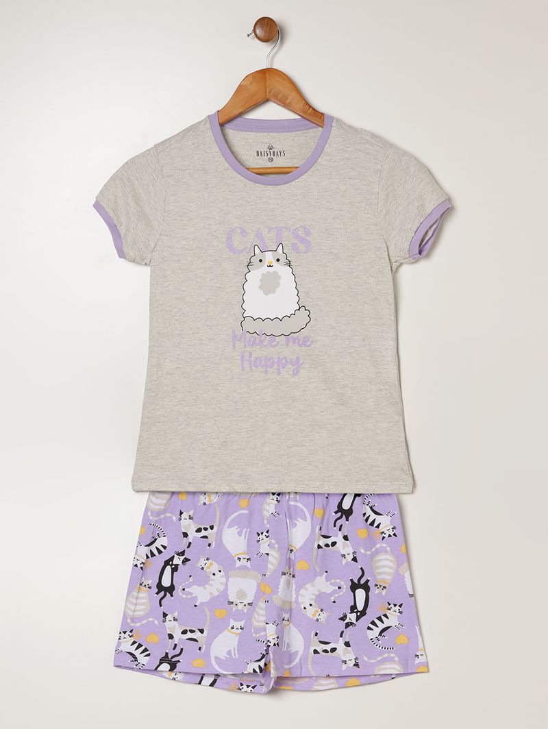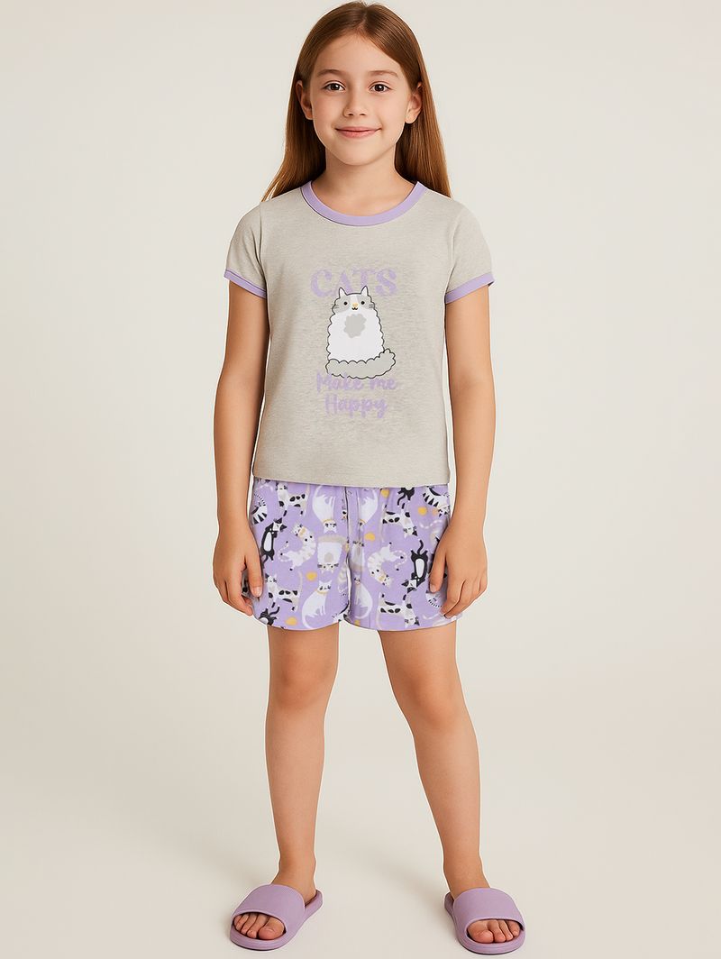Pijama Curto Juvenil Para Menina - MESCLA/LILAS