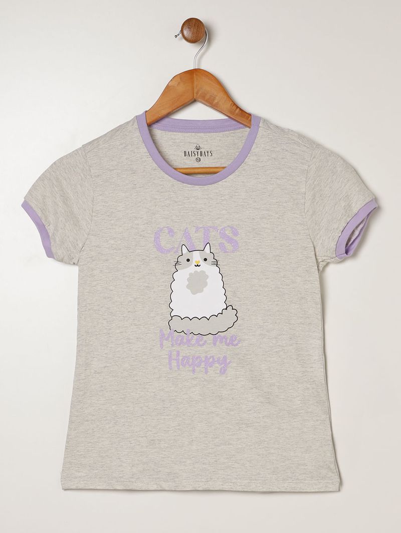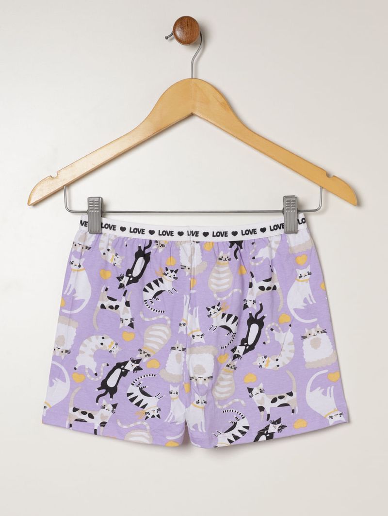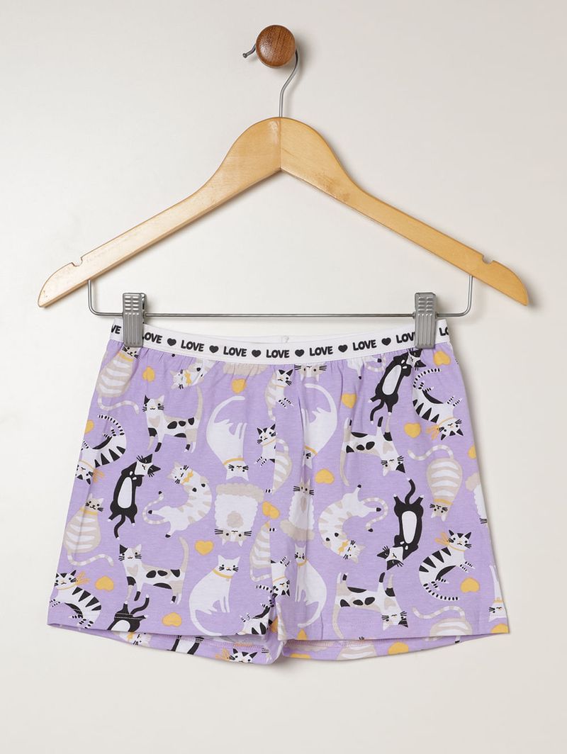 Pijama curto juvenil para menina confeccionado em malha macia e leve, garantindo conforto e liberdade de movimentos durante o sono. A blusa possui gola redonda com reforço interno, mangas curtas, barra com acabamento simples e estampa na parte frontal que adiciona um toque divertido ao visual. O short apresenta cós elástico, barra com acabamento simples e estampa em toda a extensão, proporcionando ajuste perfeito e muito conforto. Um conjunto encantador e confortável, ideal para noites tranquilas e cheias de aconchego!\n\n Tecido: Malha\n Composição blusa: 98% algodão, 02% poliéster\n COmposição short: 100% algodão