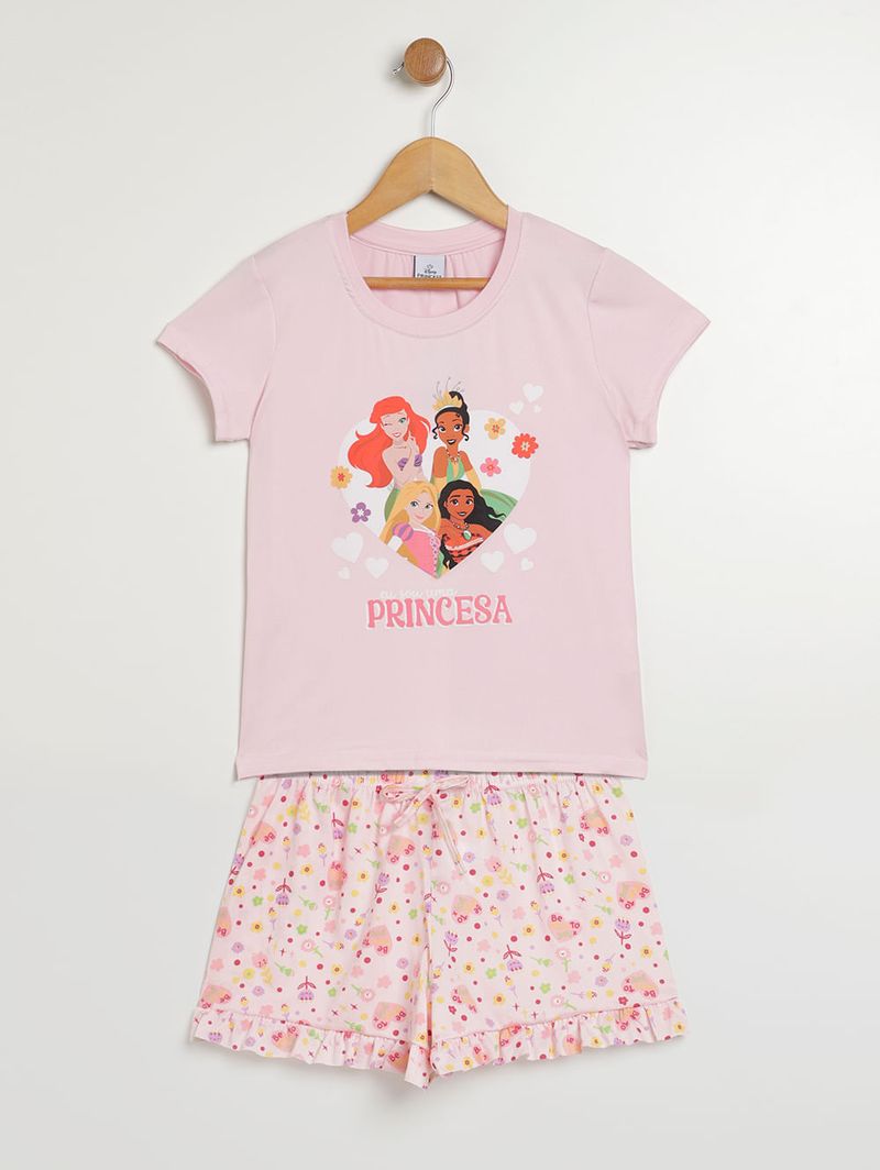 Pijama Curto Princesas Infantil Para Menina ROSA CLARO