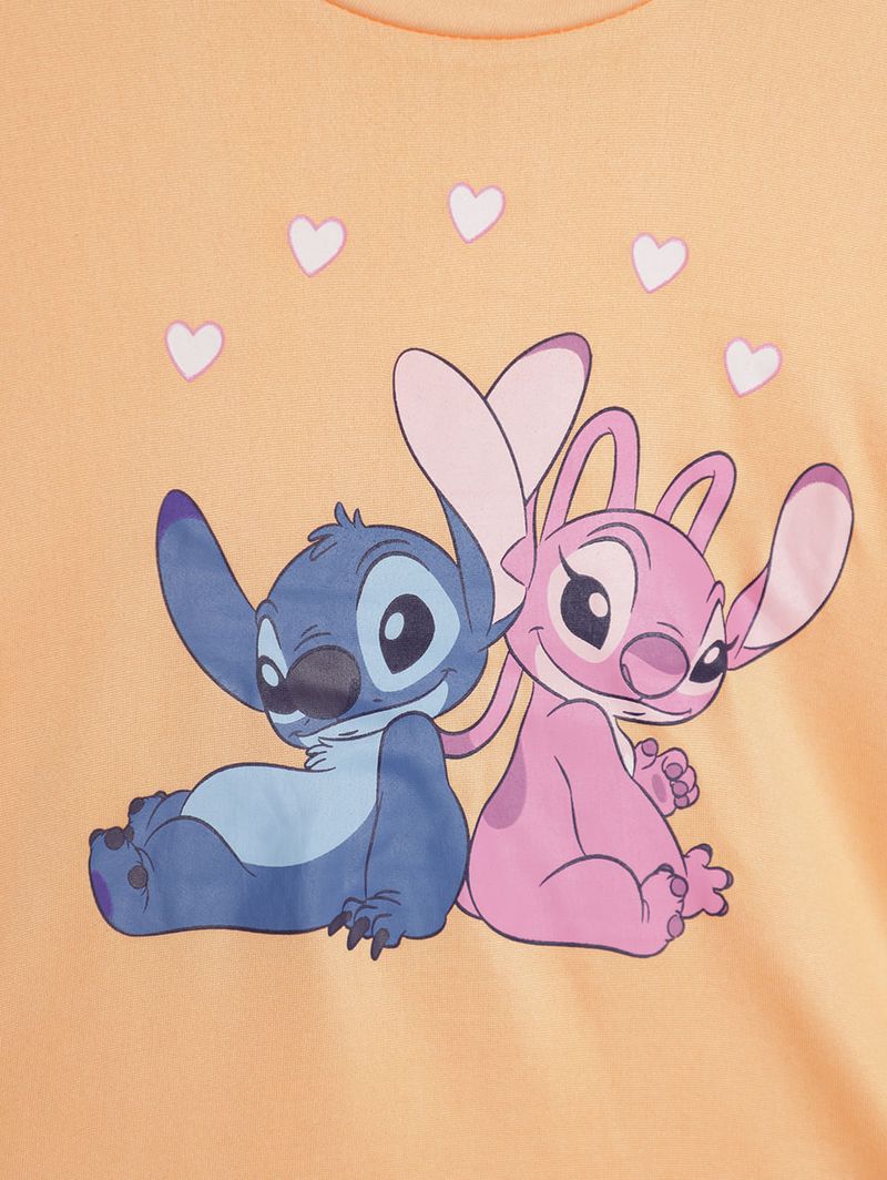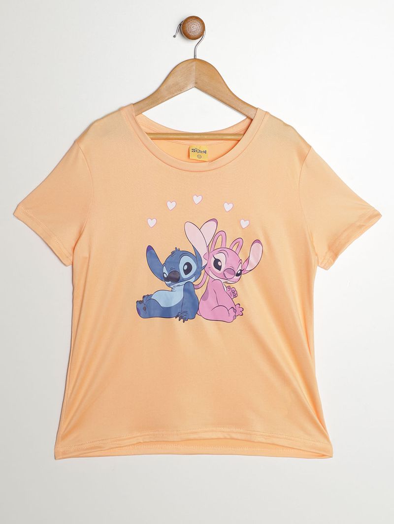 Código Pompéia 63274 Modelo Curto Código Completo 11002106327401 Gênero Feminino Idade Juvenil Manga Curta Cores Salmão Personagens Stitch