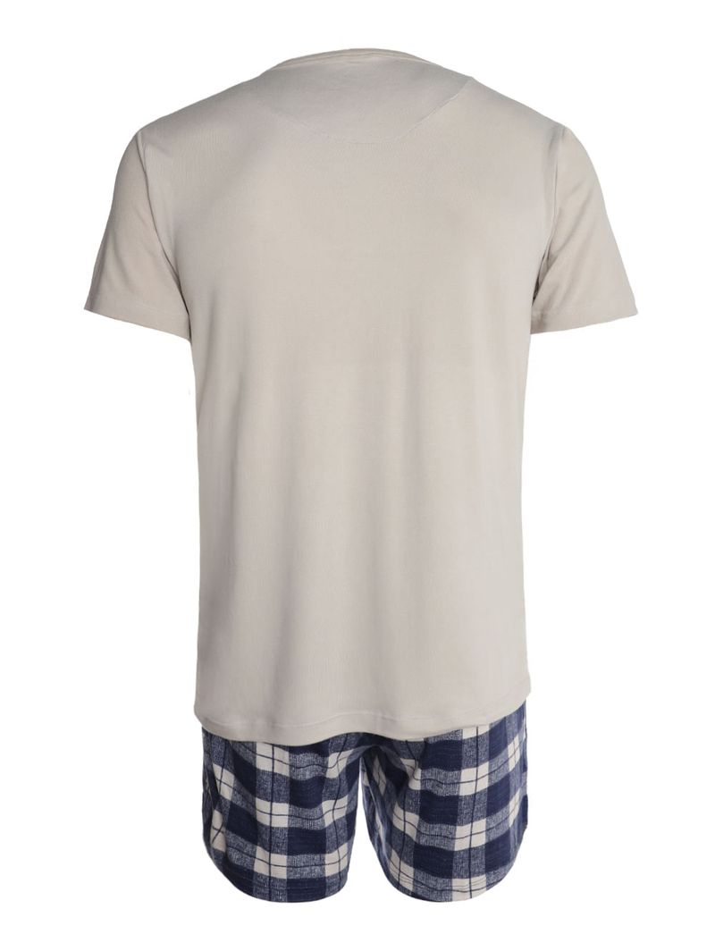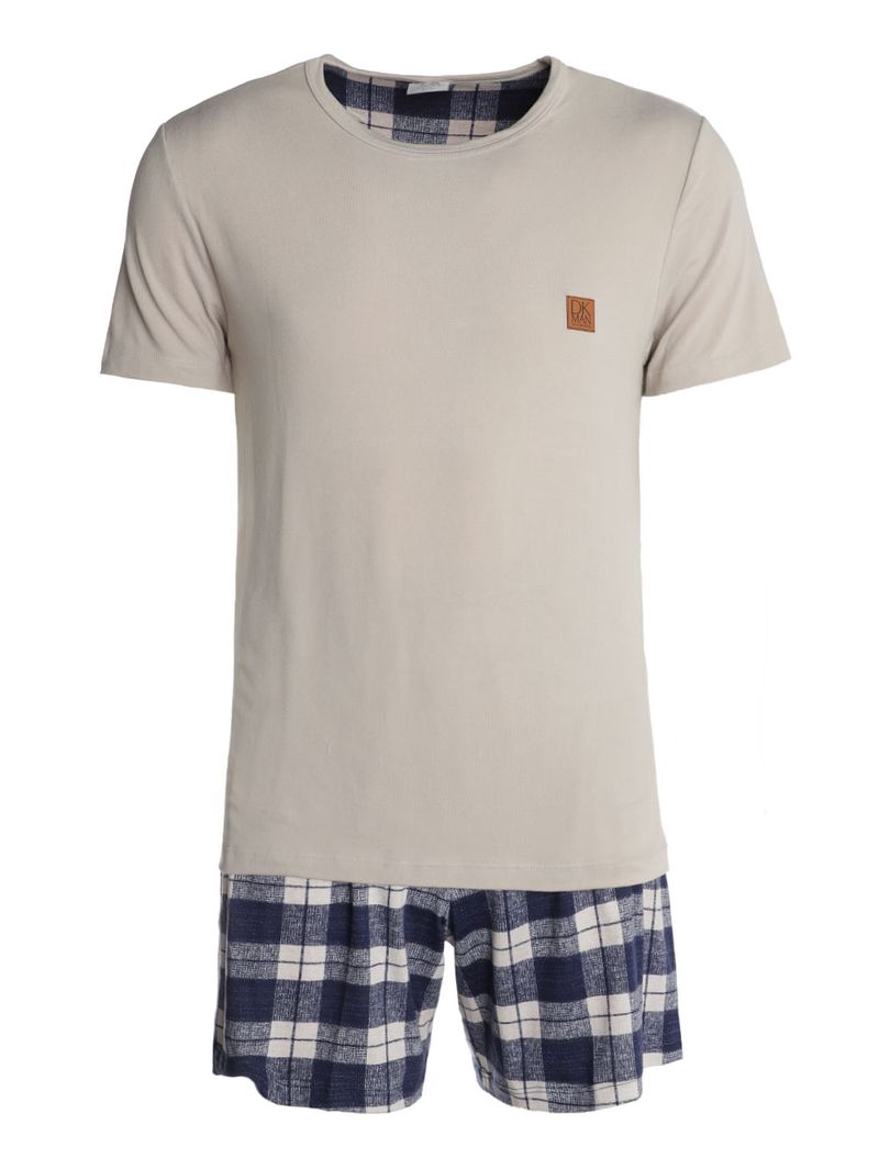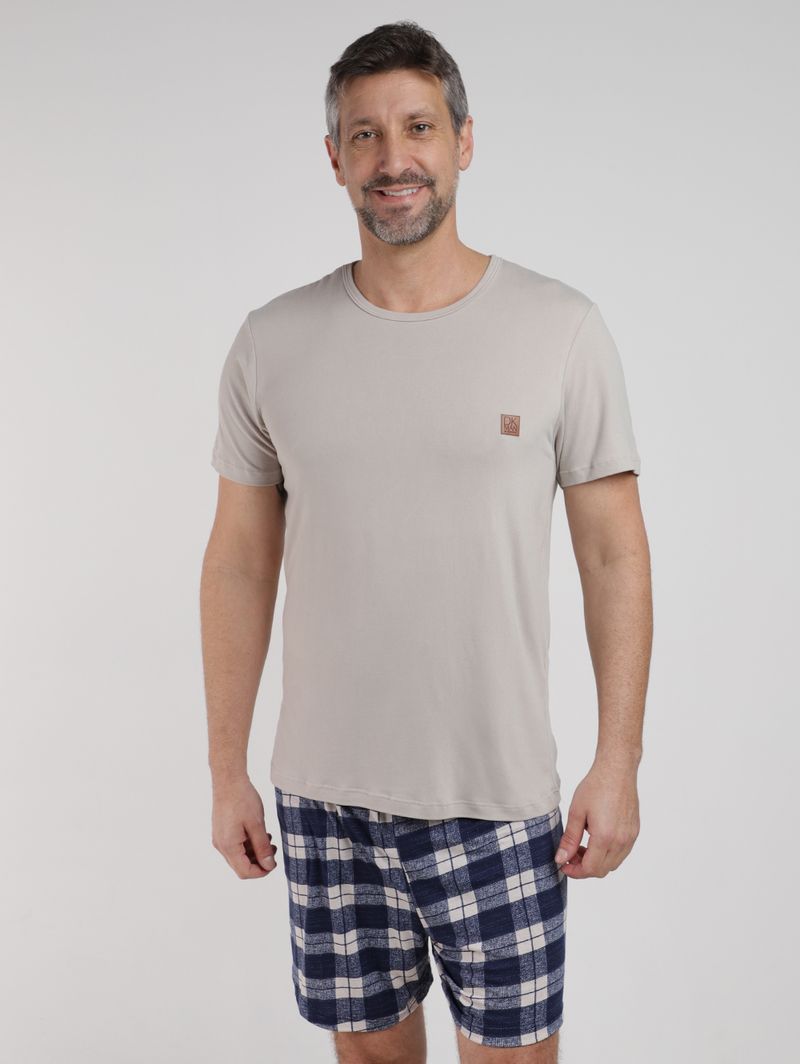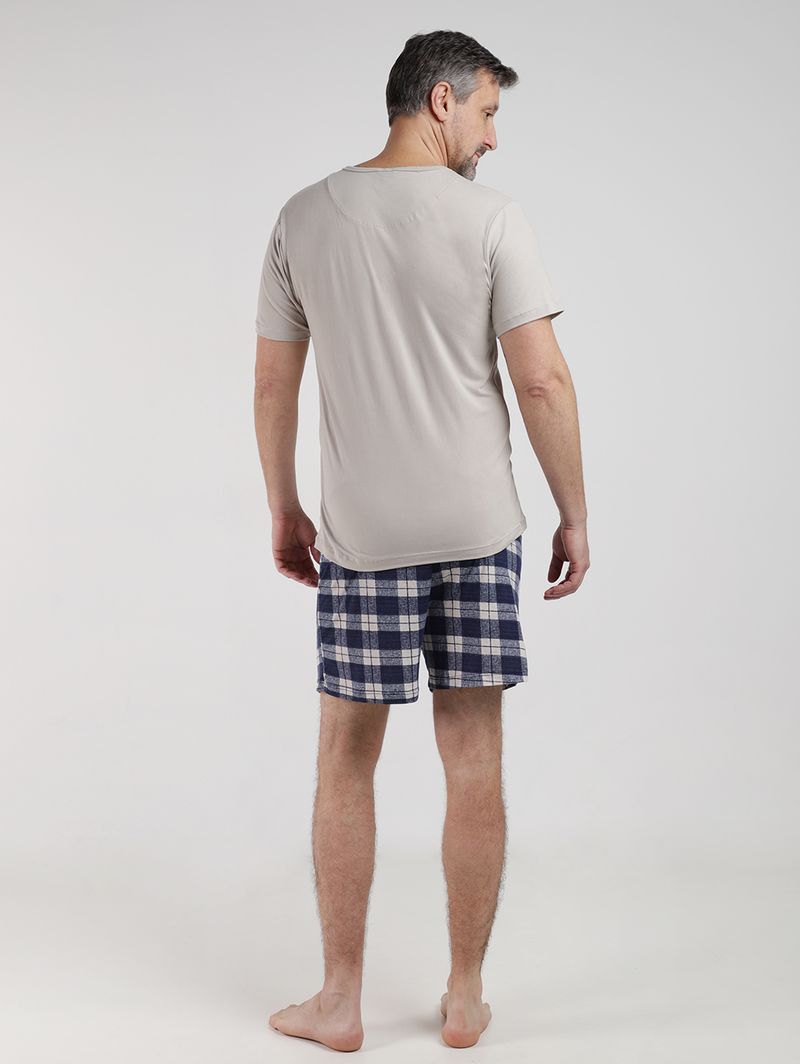 Pijama Curto Suede Xadrez Masculino BEGE