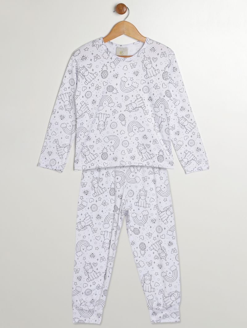 Pijama Estampas Pintáveis Infantil Para Menina- BRANCO