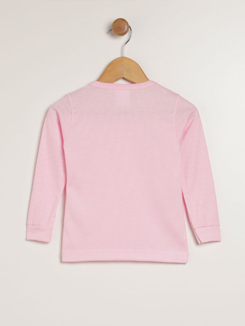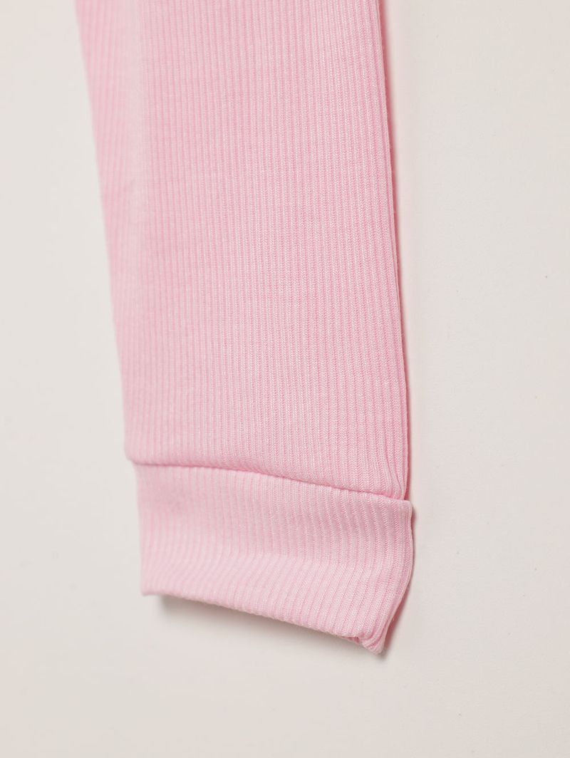 Pijama infantil para menina composto por duas peças, sendo uma blusa e uma calça, ambos desenvolvidos em malha canelada , um tecido com toque macio e com listras em relevo na posição vertical. A blusa possui gola redonda, mangas longas com punho e acabamentos simples. A calça apresenta cós elástico e barra com acabamento em punho, proporcionando um ajuste confortável. Confeccionado em tecido macio e leve, o pijama garante liberdade de movimento e bem-estar durante o uso. Invista em conforto para os momentos de descanso da sua menina!