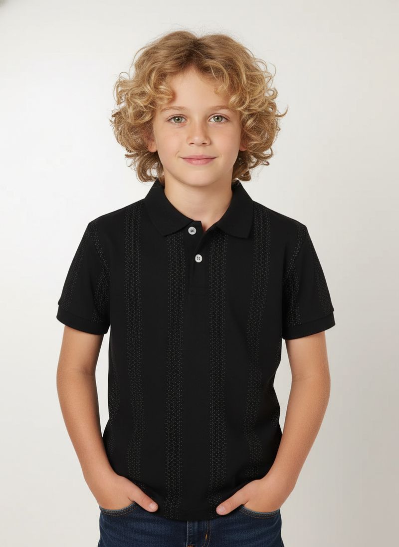 Polo Crepe Manga Curta Juvenil Para Menino - PRETO