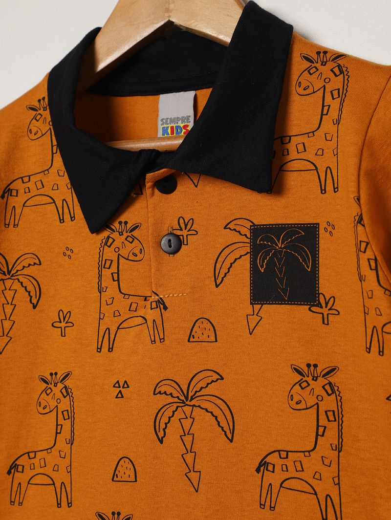Polo Malha Manga Curta Infantil Para Menino - CARAMELO