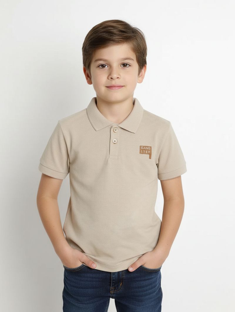 Polo Manga Curta Gangster Juvenil Para Menino BEGE