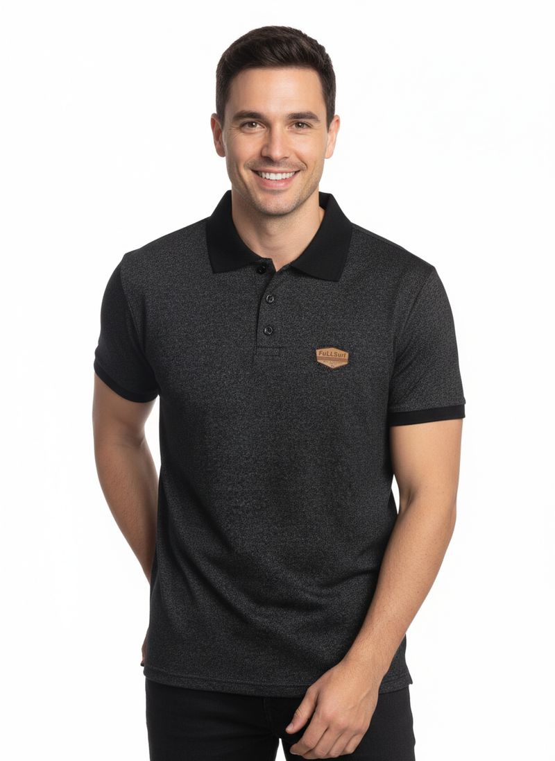 Polo masculina desenvolvida em malha mesclada, que oferece toque macio, leveza e excelente conforto para o dia a dia. Possui gola de ponta com vista interrompida por botões de casa, mangas curtas e acabamentos simples, resultando em uma peça versátil e prática para diferentes ocasiões. A aplicação da marca na altura do peito acrescenta um detalhe moderno e discreto, valorizando o visual sem exageros. Ideal para compor looks casuais com elegância e conforto garantido!\n\nTecido: Malha Mesclada\nComposição: 62% algodão, 38% poliéster