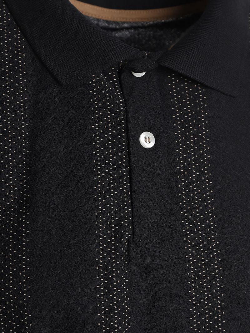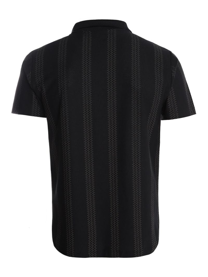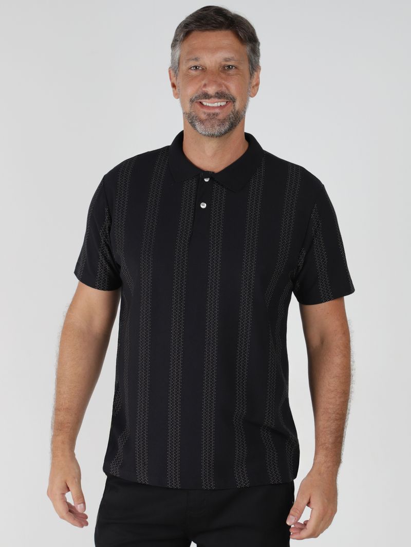 Polo masculina desenvolvida em malha crepe, oferecendo leveza, toque macio e excelente caimento para o uso diário. Possui gola de ponta, vista interrompida por botões de casa, mangas curtas e acabamentos simples, compondo uma peça moderna e fácil de combinar. O diferencial fica por conta da estampa minimalista aplicada por toda a extensão, que traz sofisticação discreta e personalidade ao visual. Uma polo versátil e elegante, perfeita para criar looks casuais com um toque refinado!\n\nTecido: Malha Crepe\nComposição: 57% algodão, 43% poliéster