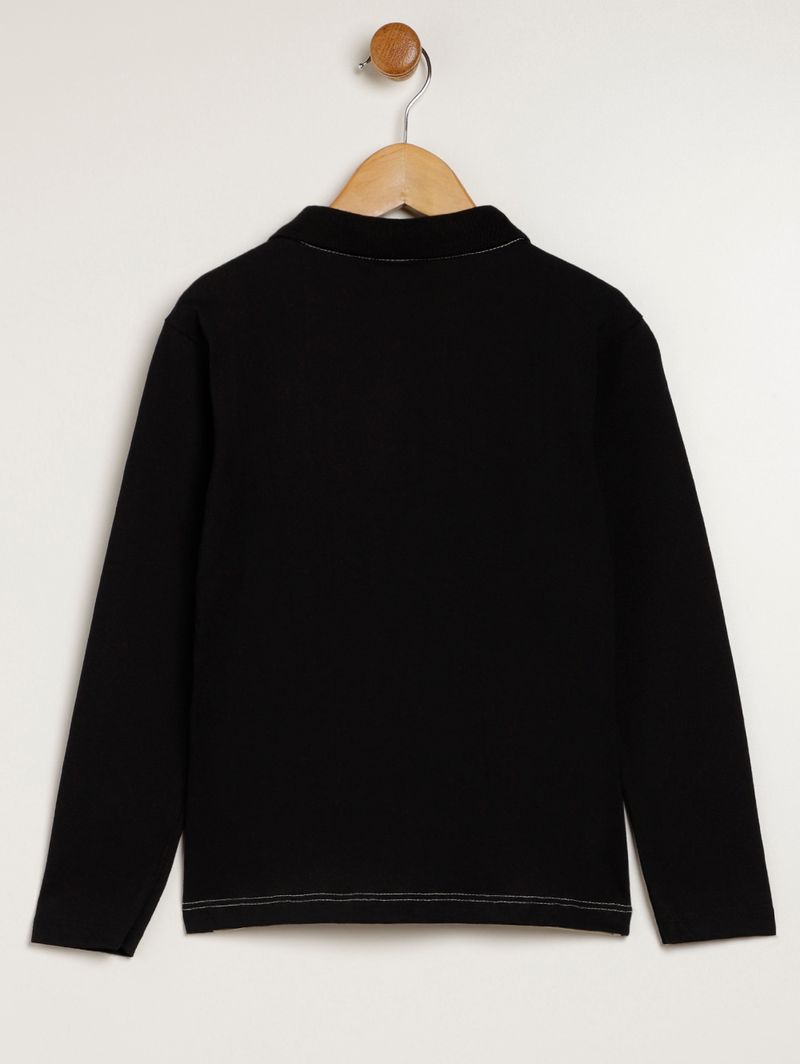 Polo Manga Longa Infantil Para Menino - PRETO