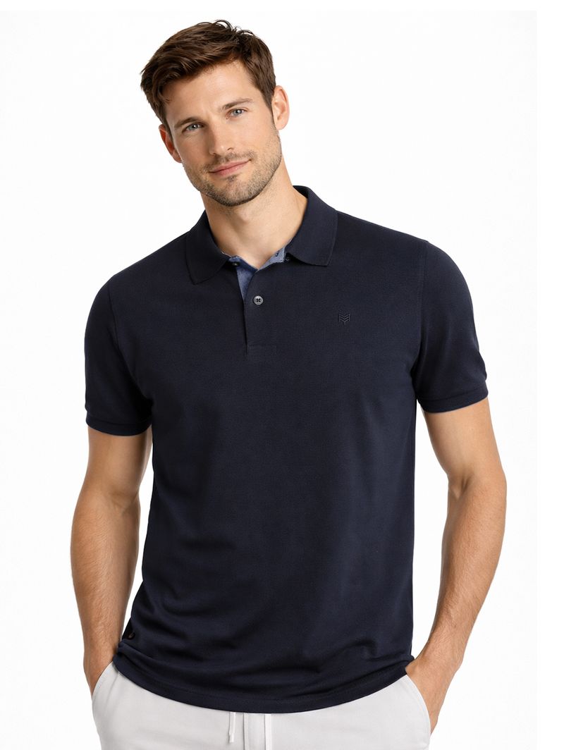 Polo Piquet Peitilho Manga Curta Masculina MARINHO