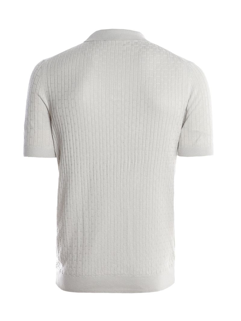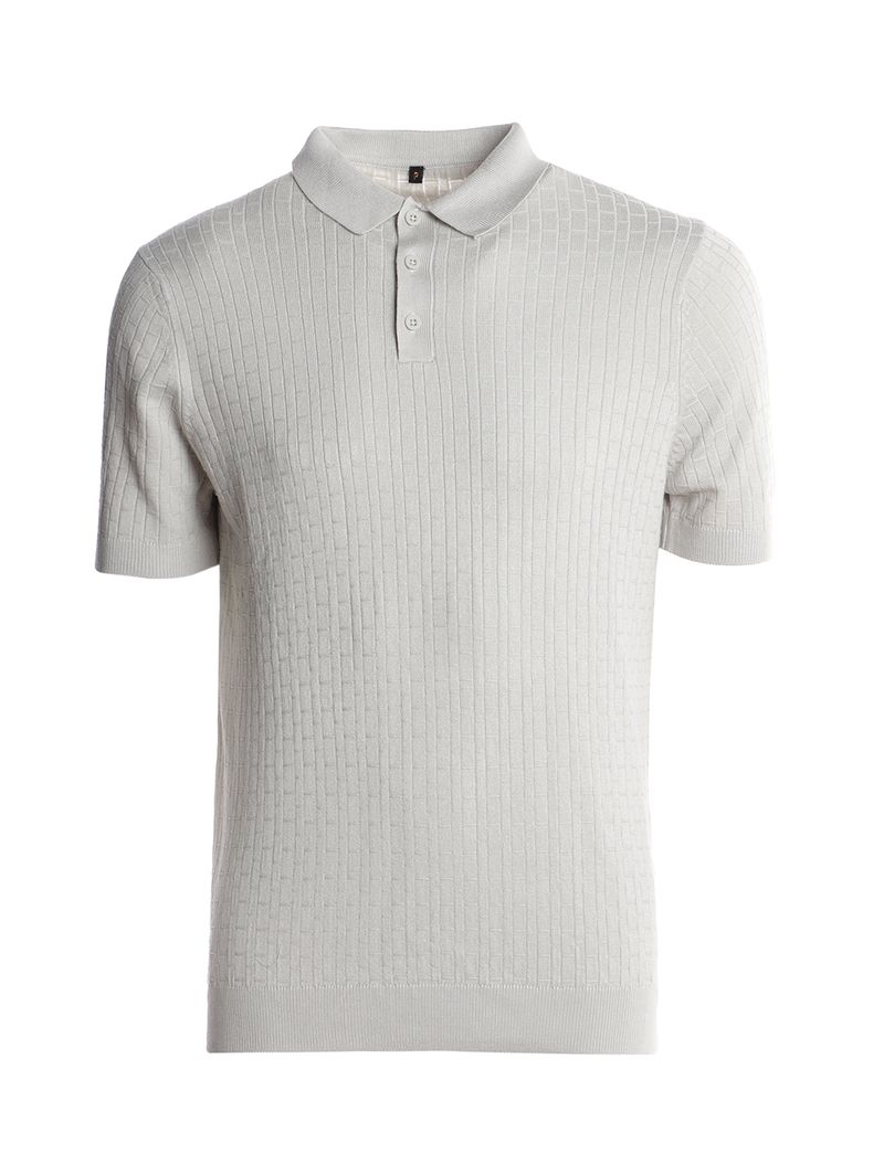 Polo masculina desenvolvida em tricot canelado, um tecido leve, macio e com boa elasticidade. O modelo apresenta gola de ponta, vista interrompida por botões de casa funcionais que dão um toque mais casual ao modelo, mangas curtas e barra com acabamento canelado. O seu diferencial fica por conta das texturas em toda a extensão da peça. A peça perfeita para os seus looks serem de mais versatilidade!\n\nTecido: Tricot Canelado\nComposição: 70% viscose, 30% poliamida
