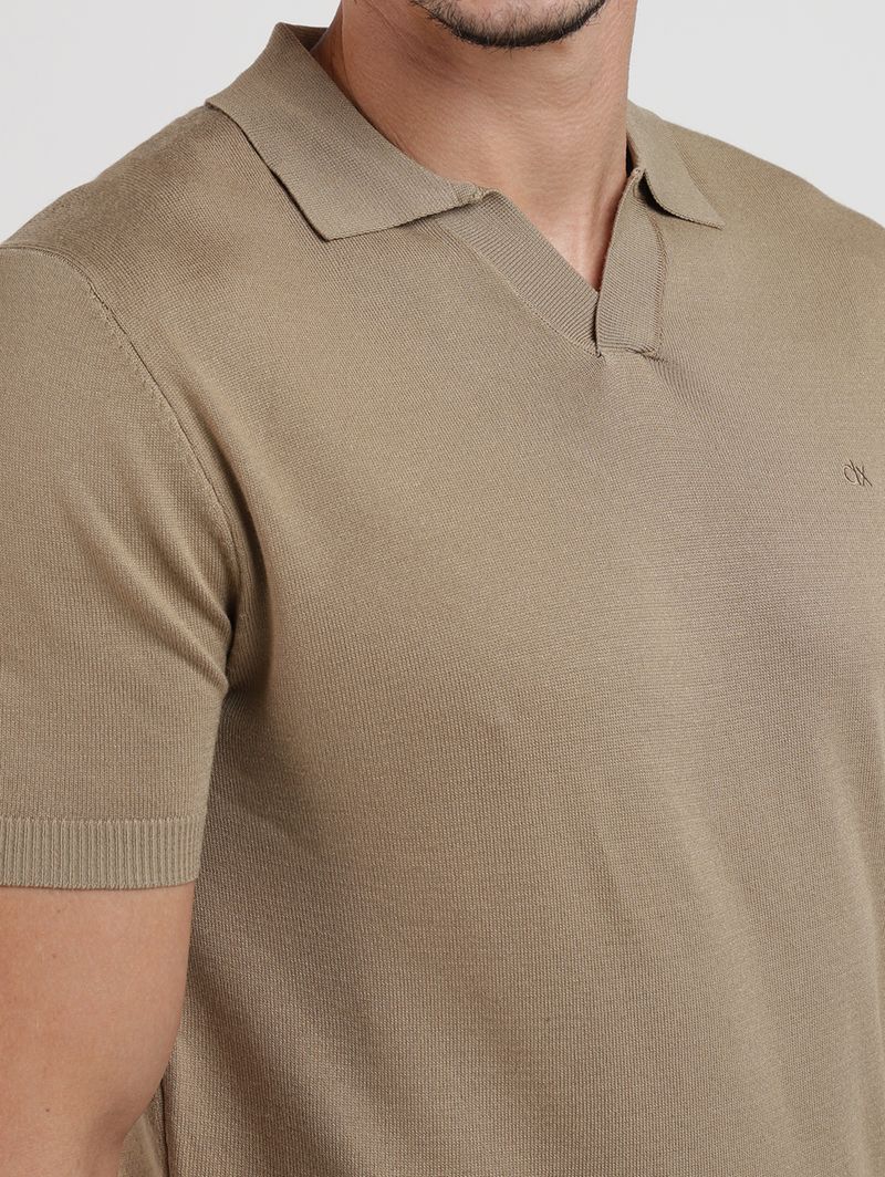 Polo Tricot Manga Curta Dixie Masculina BEGE