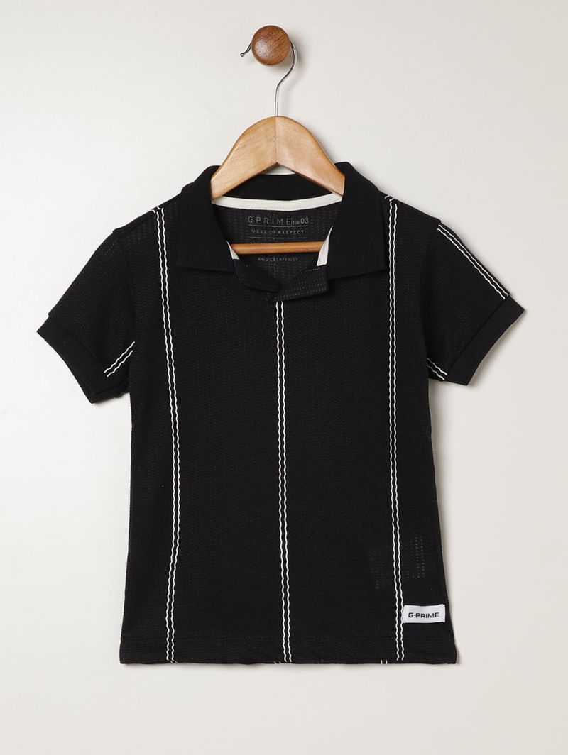 Polo Tricot Manga Curta Infantil Para Menino - PRETO