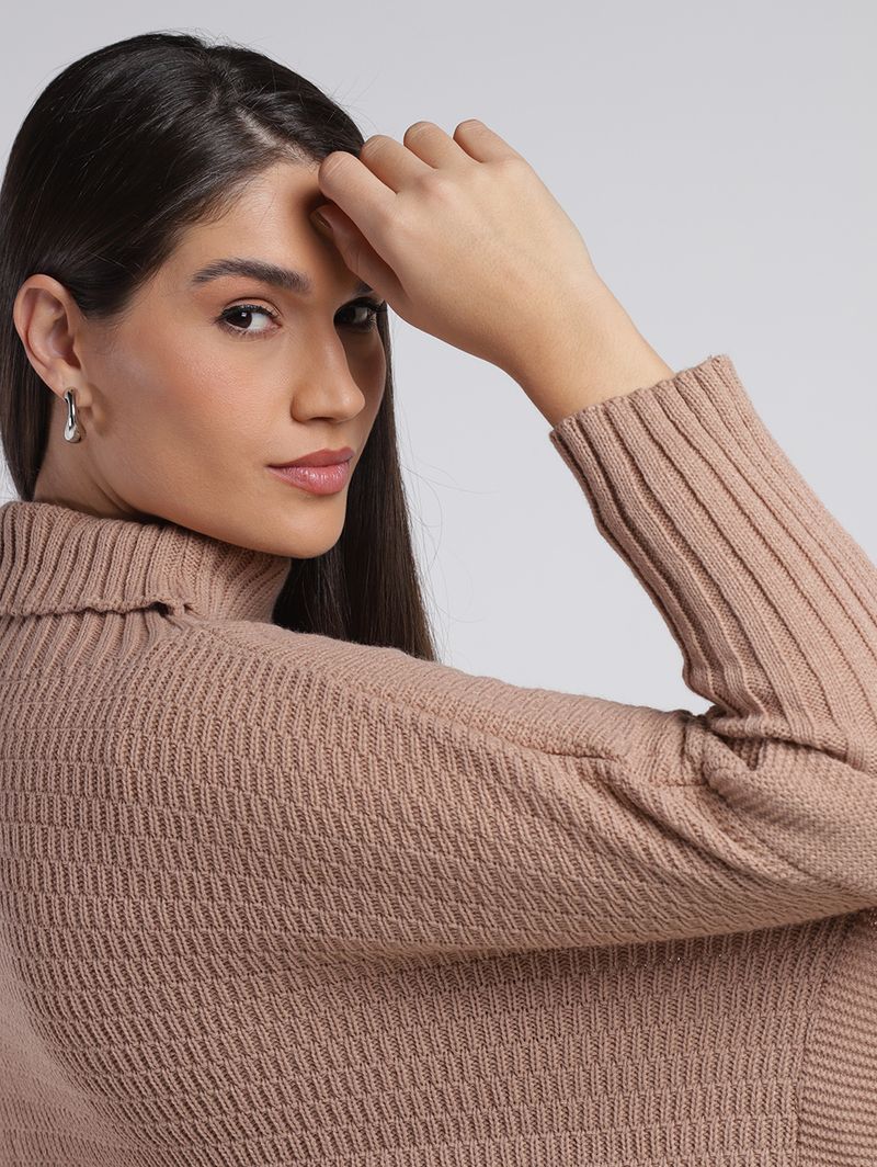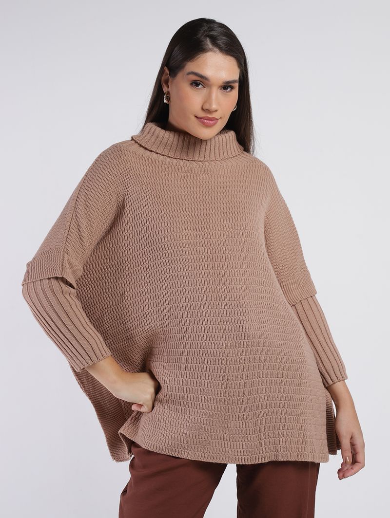 Poncho Amplo Gola Alta Feminino BEGE