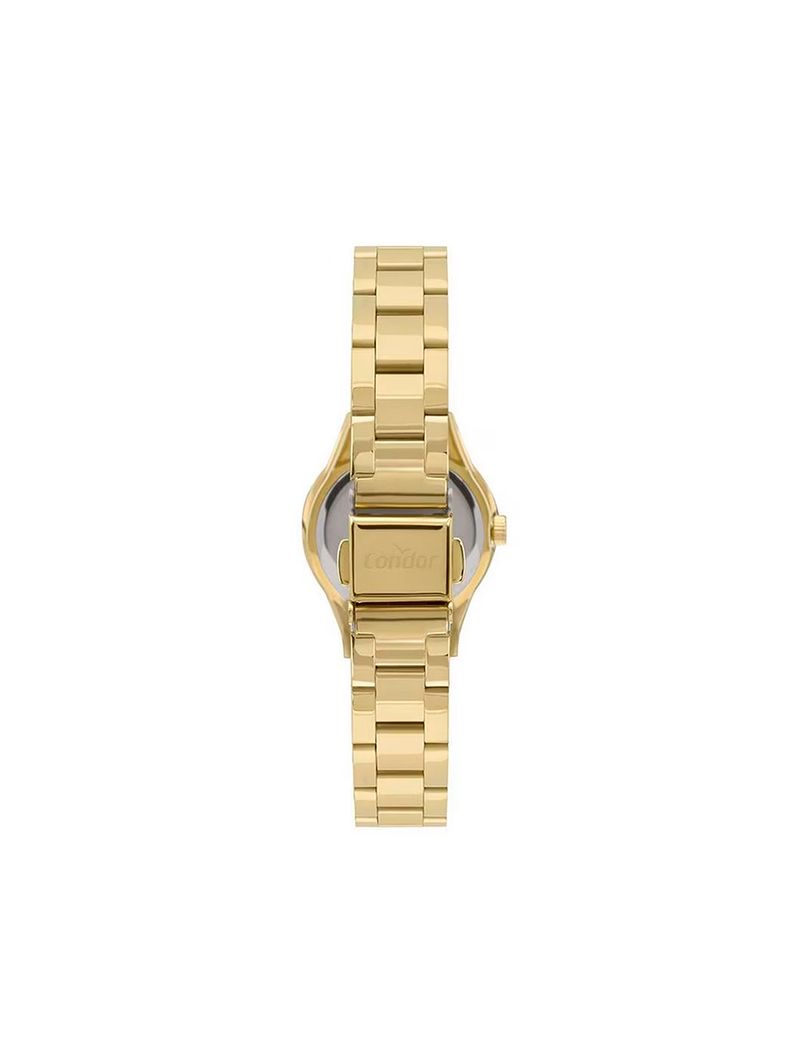 Relógio feminino desenvolvido com caixa em polímero e pulseira em aço 3 links com banho dourado. O modelo mini possui mecanismo analógico, fechamento por fivela e resistência à água em até 5 atm. Relógio feminino desenvolvido com caixa em polímero e pulseira em aço inoxidável, ambos com banho dourado. Apresenta modelo mini com caixa redonda pequena de 27mm, design delicado com mostrador dourado, pulseira fina e mecanismo analógico. Seu fechamento é feito por encaixe. Conta com resistência à água até 5 atm. Ideal para combinar com outros acessórios, o modelo mini é delicado e indispensável para facilitar o dia a dia das mulheres! Acompanha caixa e manual de instrução. Especificações do Produto: Material: Polímero/Aço Banho: Dourado Tipo: Analógico Tamanho da Caixa: 27mm Resistência à água: 5 atm Modelo: COPC21JHT/7D Linha: Mini Marca: Condor *A garantia do produto deve ser acionada diretamente com o Grupo Technos. Em decorrência do uso do flash, as peças podem sofrer alteração de cor. Sobre a marca Condor: A marca faz parte do grupo Technos, a maior empresa de relógios da América Latina. Desde 1956, produz relógios com muita tradição, qualidade, tecnologia e estilo.