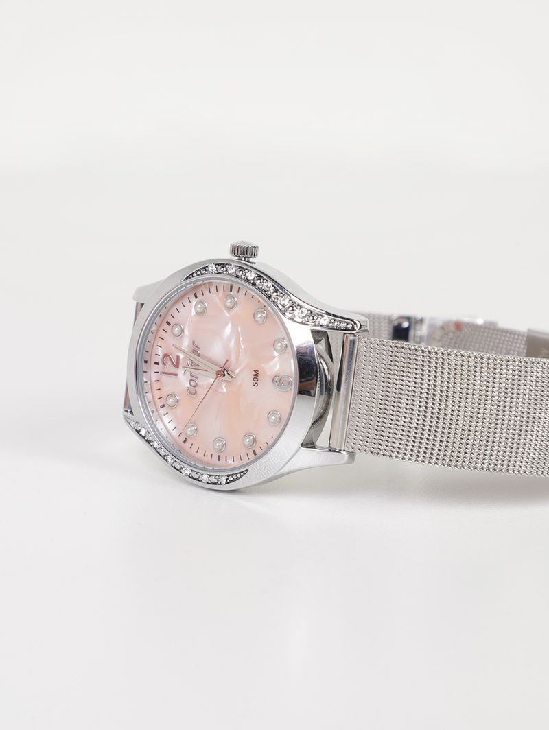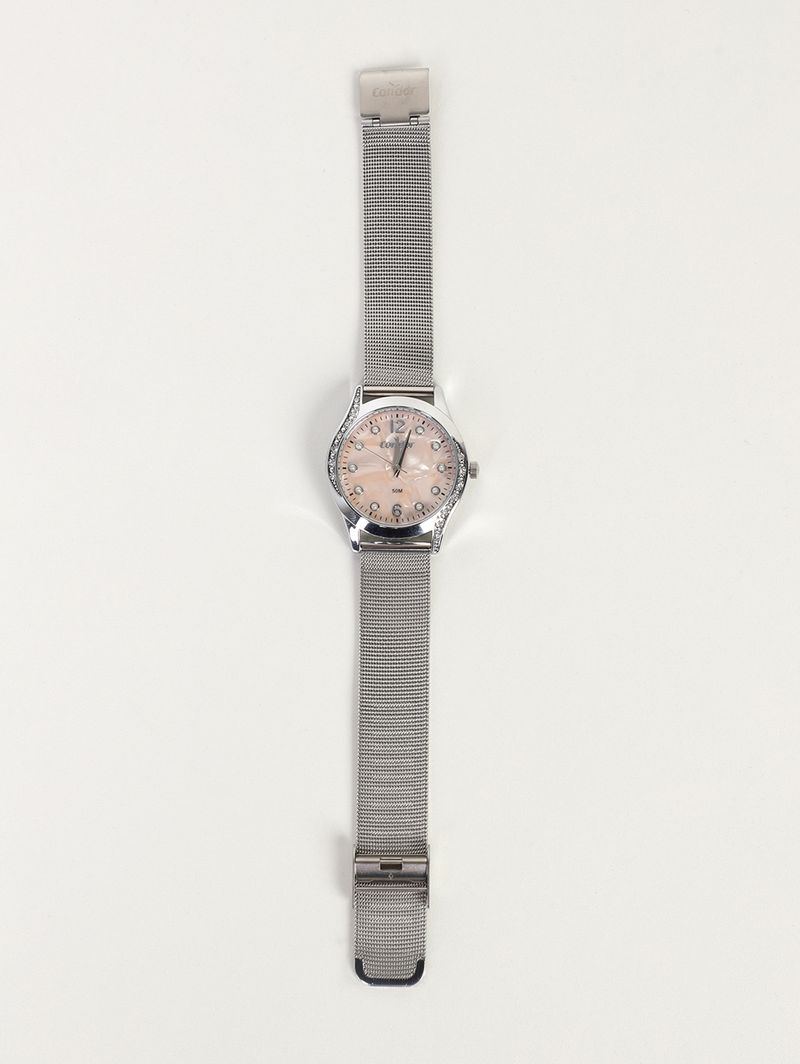 Relógio feminino desenvolvido em malha de aço mesh, conhecido por sua resistência à corrosão e durabilidade, enquanto sua textura refinada dá um toque de elegância à peça. O modelo apresenta design moderno com mostrador na cor rosê adornado por delicadas pérolas, além de pedrarias aplicadas no aro externo, que acrescentam brilho e sofisticação à peça, tornando-a perfeita para complementar produções elegantes e cheias de estilo. Possui mecanismo analógico que contém ponteiros indicando as horas, minutos e segundos. Sua caixa redonda de 36mm foi desenvolvida em metal com vidro em cristal mineral e pino para um ajuste perfeito das horas. Apresenta fechamento por fecho gancho que facilita o ajuste da pulseira no pulso. Conta com resistência à água em até 50 metros (5 ATM), para contatos acidentais com a água. Um acessório atemporal que une elegância e funcionalidade, ideal para quem deseja valorizar cada detalhe do visual com sofisticação! Acompanha caixa e certificado de garantia.\n\nEspecificações do Produto:\n\nCor: Prata\nTipo: Analógico\nMaterial: Malha de Aço Mesh\nCor do Mostrador: Rosê\nFormato: Redondo\nLargura da Caixa: 36mm\nResistência à água: 5 ATM\n\nModelo: CO2035NSV/4J\n\nA garantia do produto deve ser acionada diretamente com o Grupo Technos.