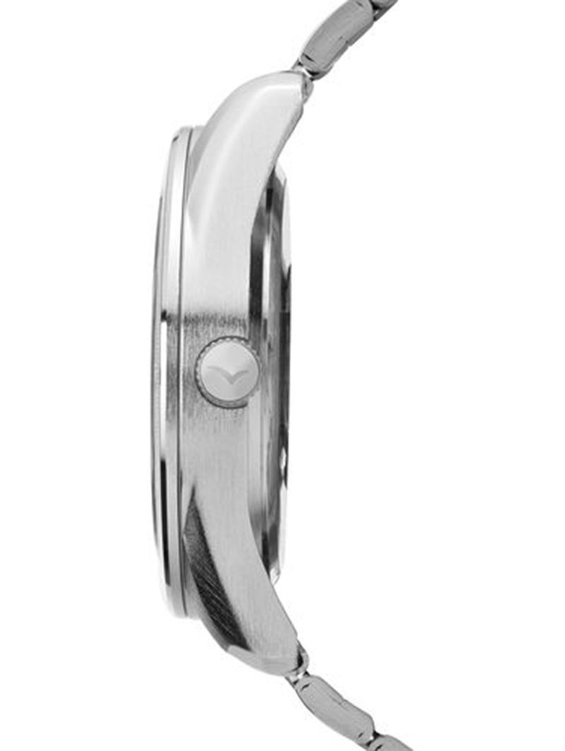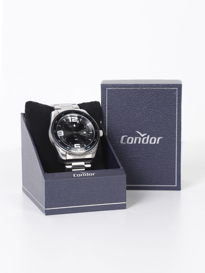 Cor: Prata Tipo: Analógico Material: Aço Inoxidável Cor do Mostrador: Preto Formato: Redondo Largura da Caixa: 46mm Resistência à água: 5 ATM