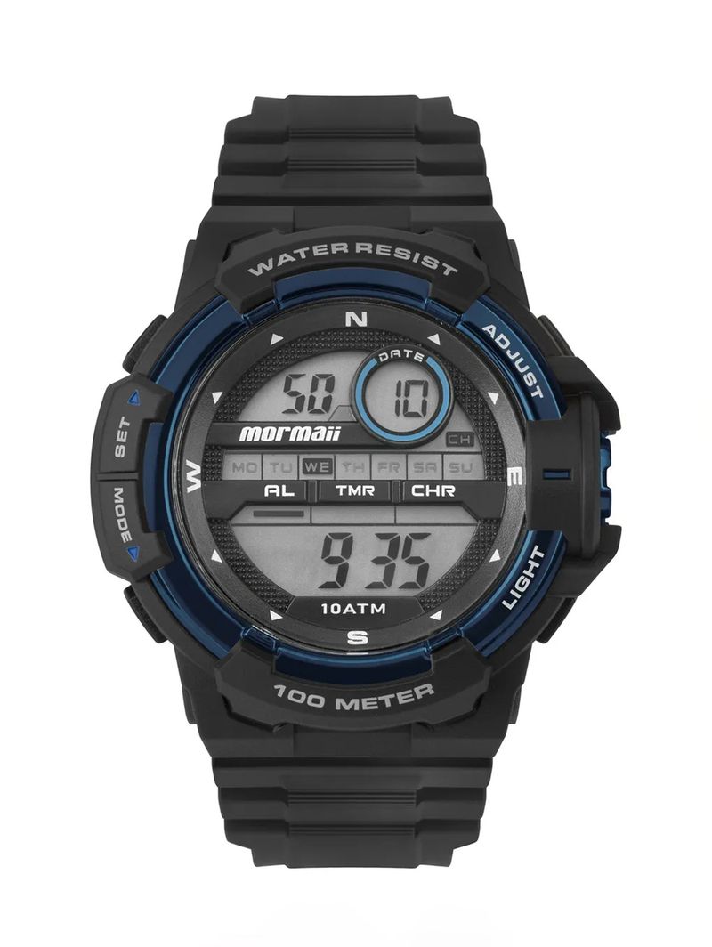 Relógio masculino desenvolvido em polímero, um material de boa qualidade e durabilidade. Possui design esportivo que traz maior estilo às suas produções, sendo ideal para homens com personalidade. Apresenta mecanismo digital com mostrador na cor preta que mostra as horas, minutos e segundos, além de calendário com os dias do mês e da semana. Conta com as funções de timer, cronômetro, alarme e luz que facilita para ver as horas no escuro. O seu fechamento é por fivela que garante um ajuste perfeito. Garanta mais estilo às suas produções com um acessório funcional!\n\nEspecificações do relógio:\n\nTipo: Digital\nMaterial: Polímero\nFormato: Redondo\nTipo de fecho: Fivela\nCor: Preto\nCor mostrador: Preto\nTamanho: 55 mm\nResistência à água: 100m\n\nModelo: MO03665AA/8A\n\n- A garantia do produto é feita diretamente com o Grupo Technos.