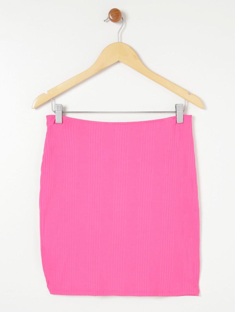 Saia Curta Malha Canelada Feminina Rosa Pink