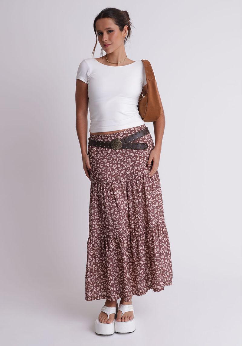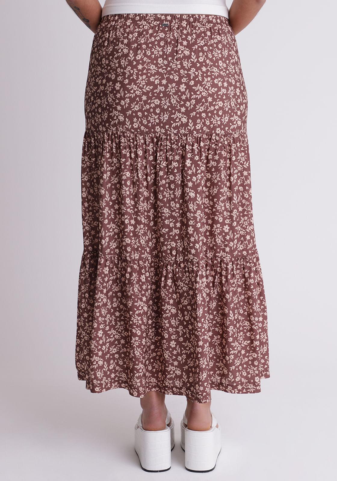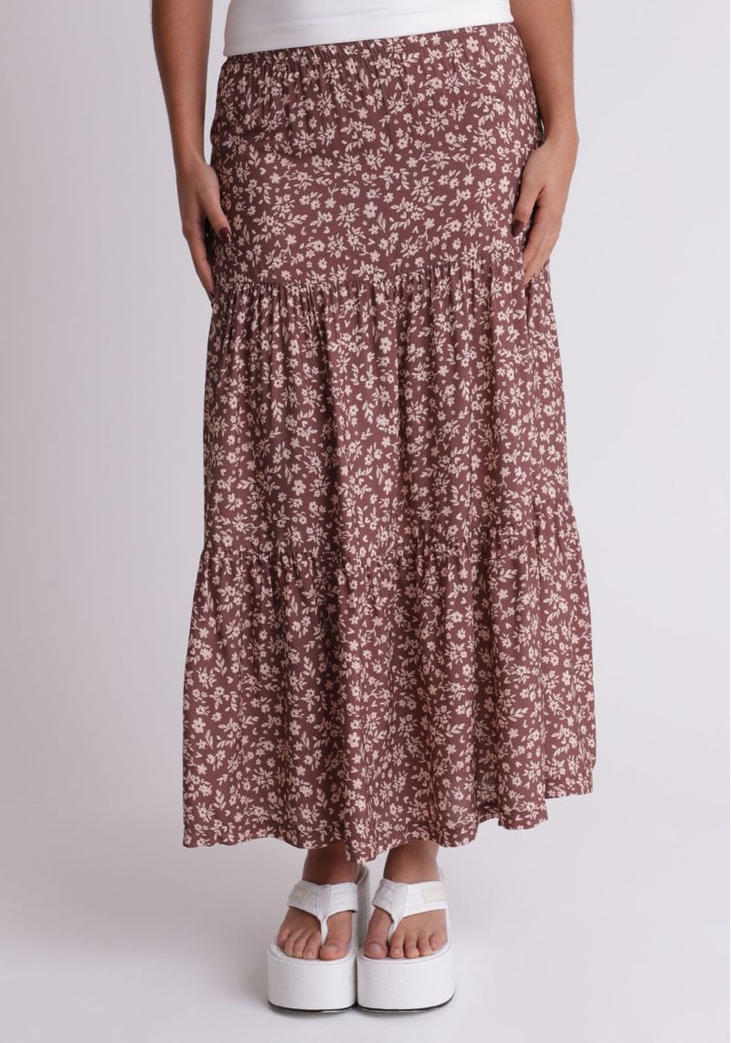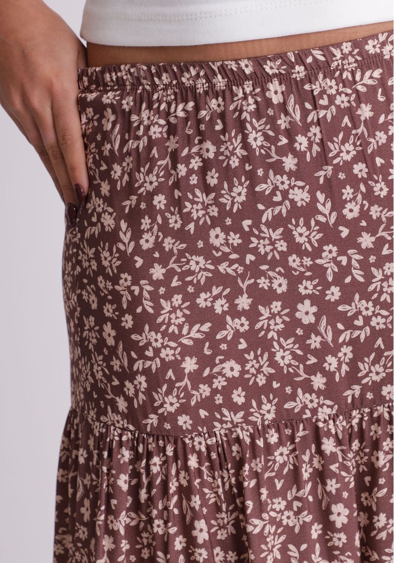 Saia midi estampada com babados Marias