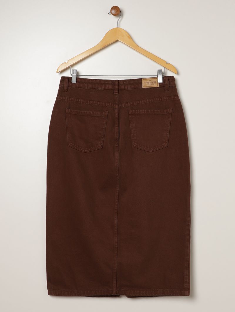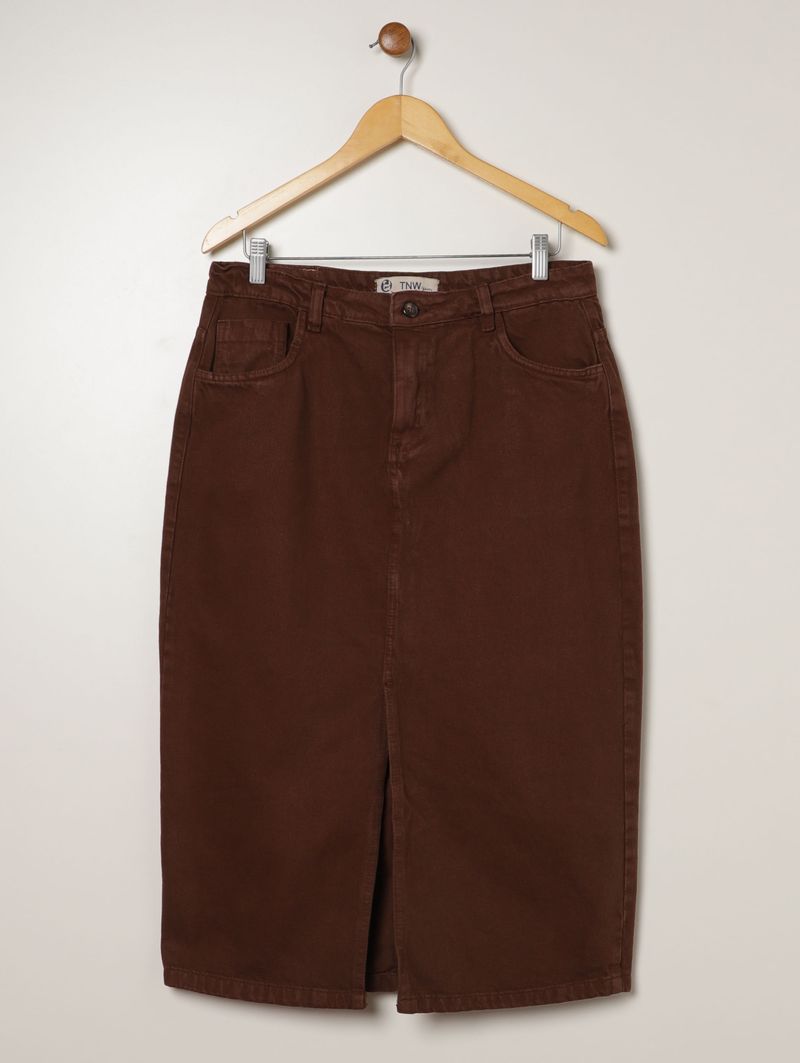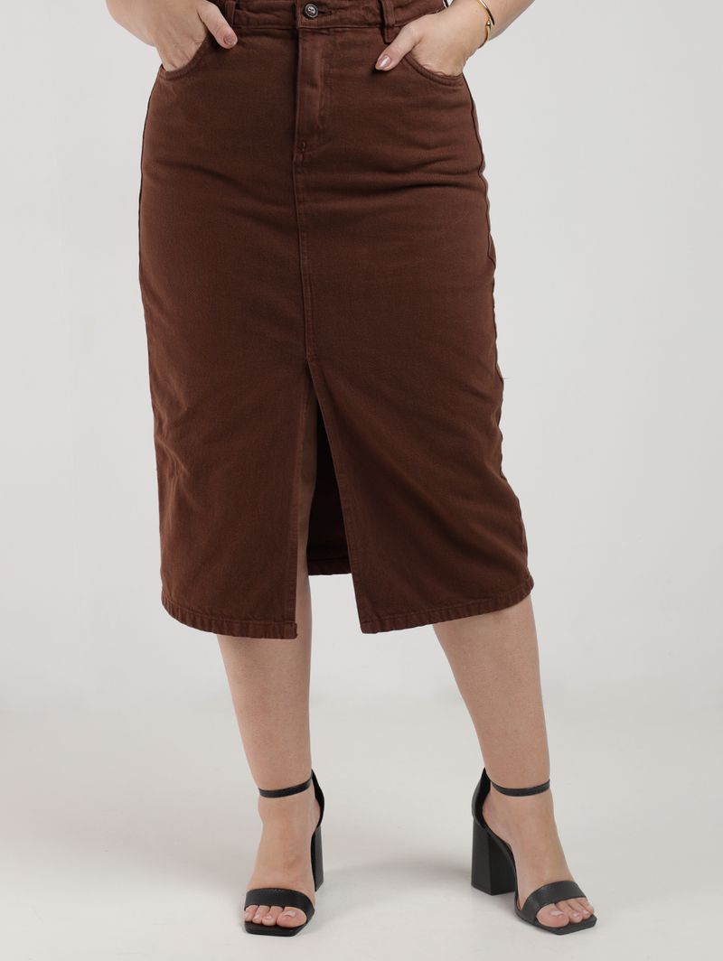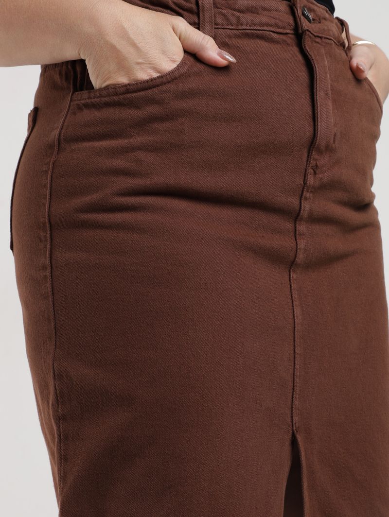 Saia Sarja Midi Plus Size Feminina MARROM