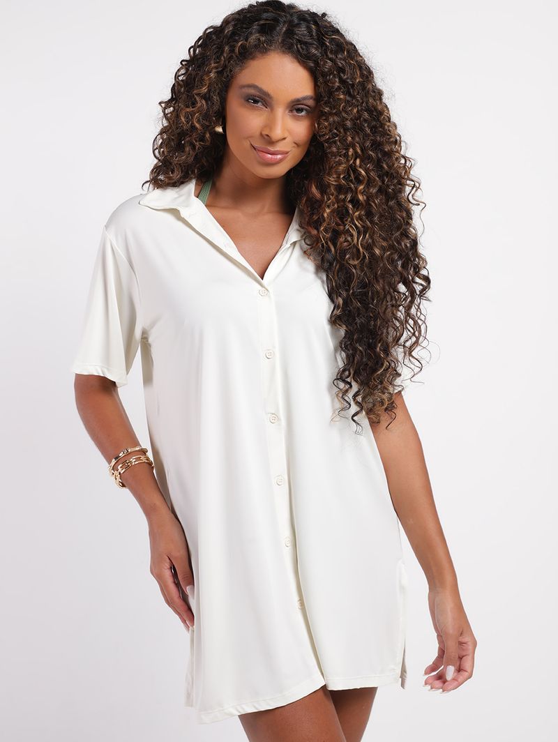 Saída de Praia Chemise Manga Curta Feminina BRANCO