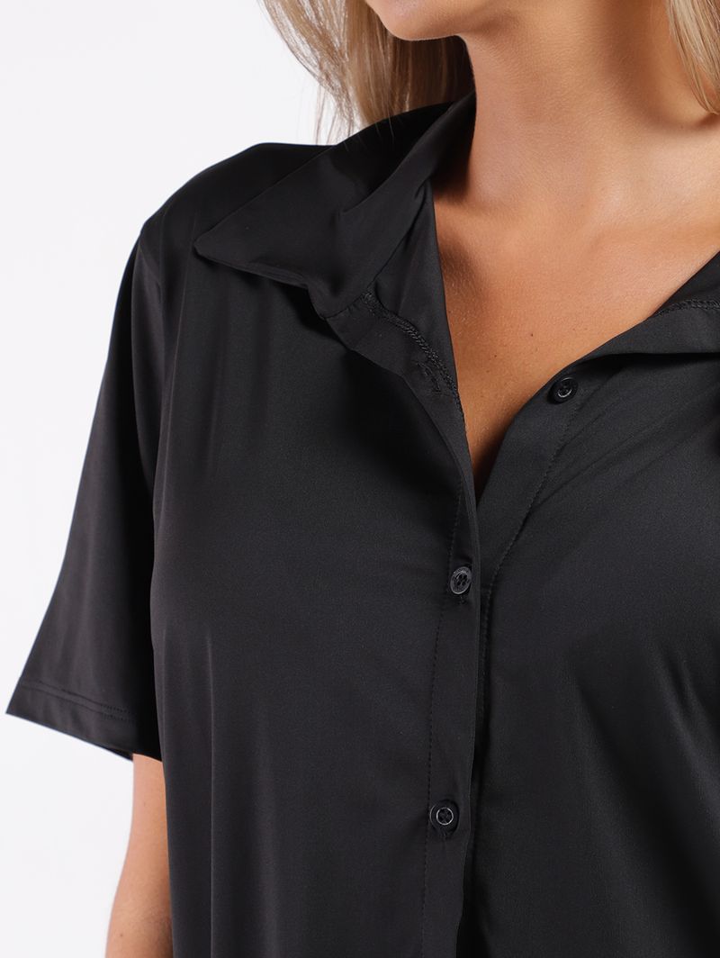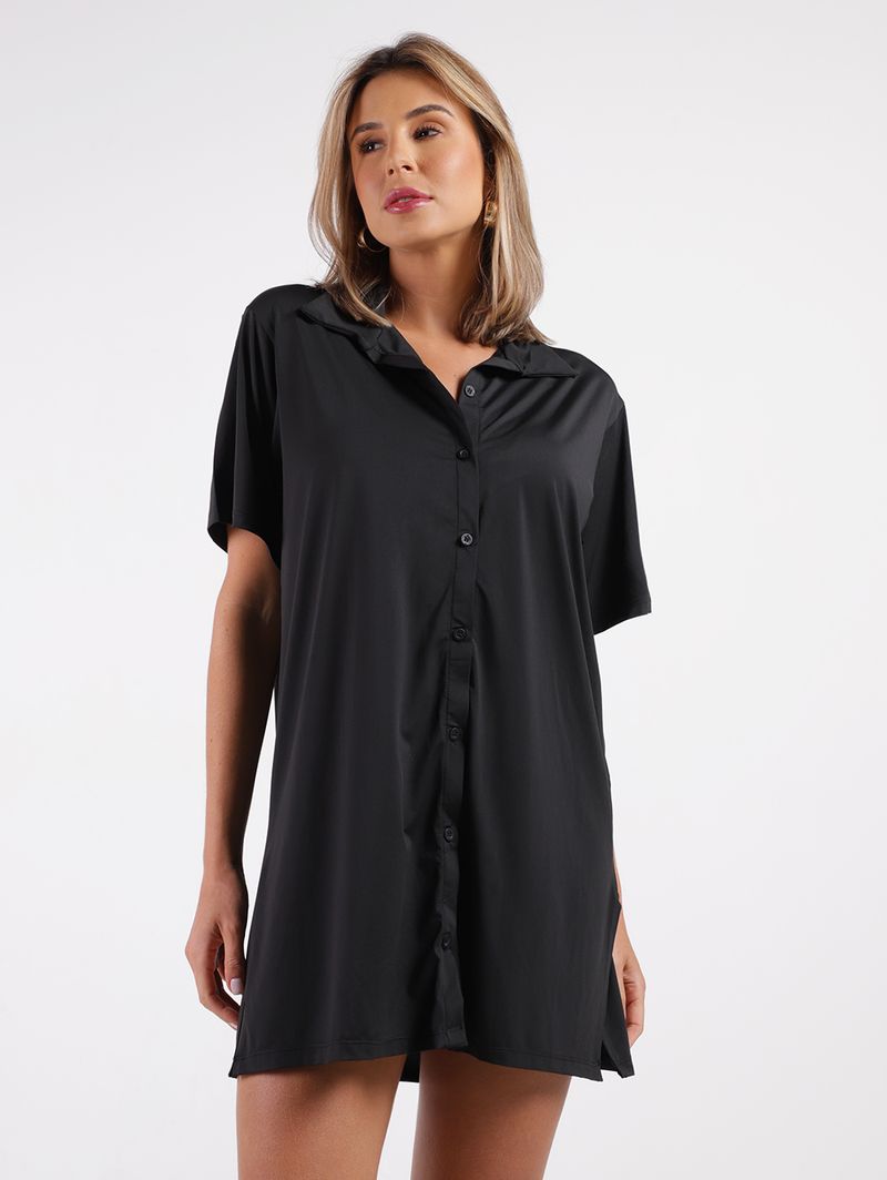 Saída de Praia Chemise Manga Curta Feminina PRETO