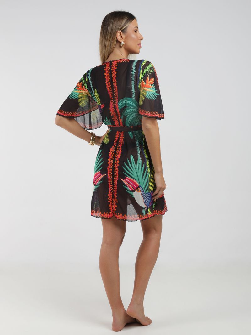 Saída de Praia Kimono Estampado Feminino MULTICOLORIDO