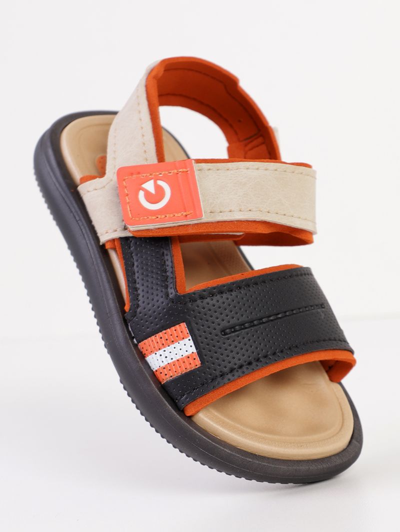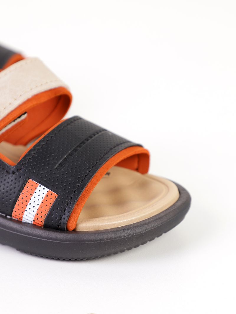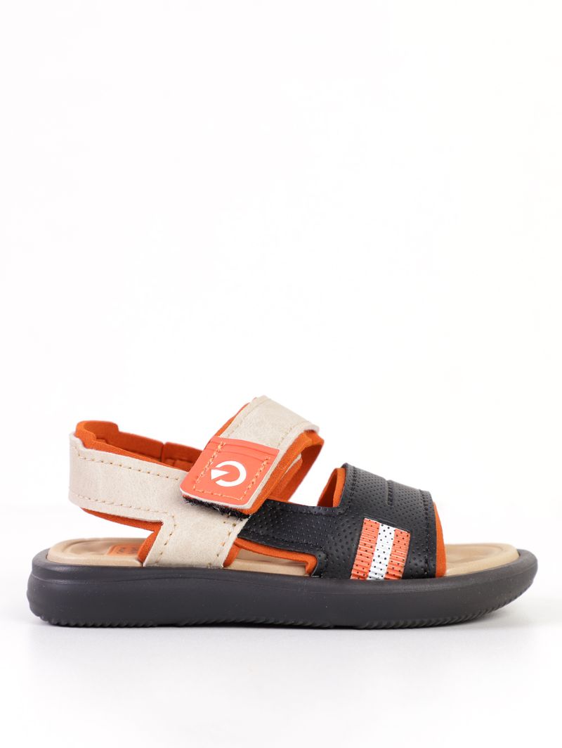 Sandália Cartago Infantil Para Bebê Menino - PRETO/BEGE/LARANJA
