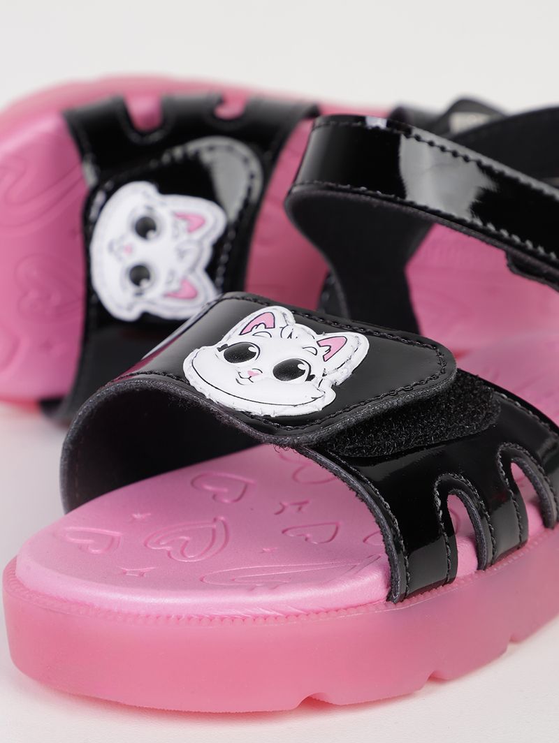 Sandália Led Gatinha Infantil Para Menina - PRETO/ROSA