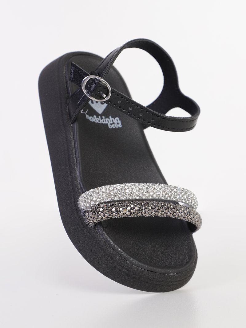 Sandália Molekinha Infantil Para Bebê Menina - PRETO/PRATA
