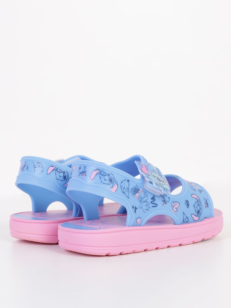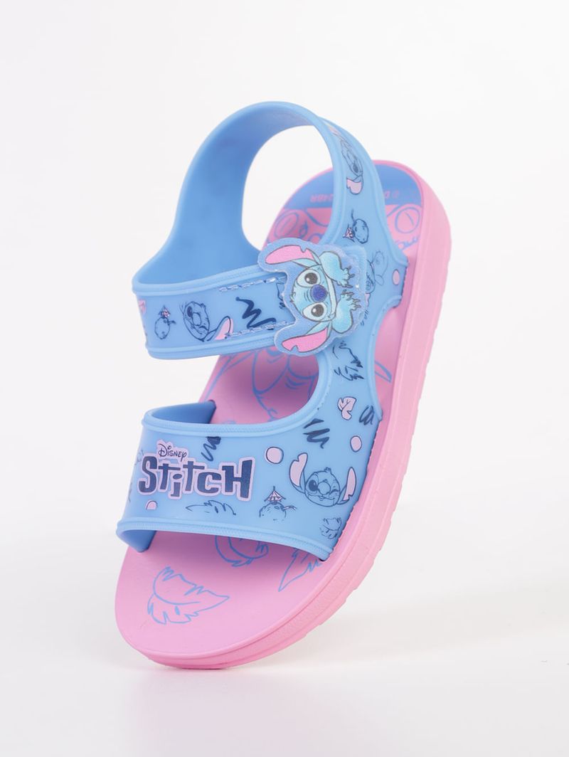 Sandália infantil para bebê desenvolvida em material sintético de boa qualidade e durabilidade. O modelo apresenta alças médias que garantem mais segurança ao caminhar, fechamento por velcro que garante um ajuste personalizado, palmilha macia e solado antiderrapante. O seu diferencial fica por conta da estampa na palmilha e tiras do personagem Stitch, o alienígena super fofo dos filmes da Disney que encantou o coração da criançada. Perfeito para a sua pequena se encantar a cada passo!\n\nMaterial: Sintético