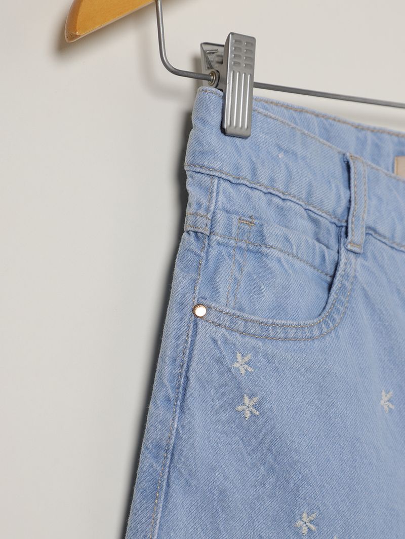 Short Jeans Bordado Juvenil Para Menina - AZUL